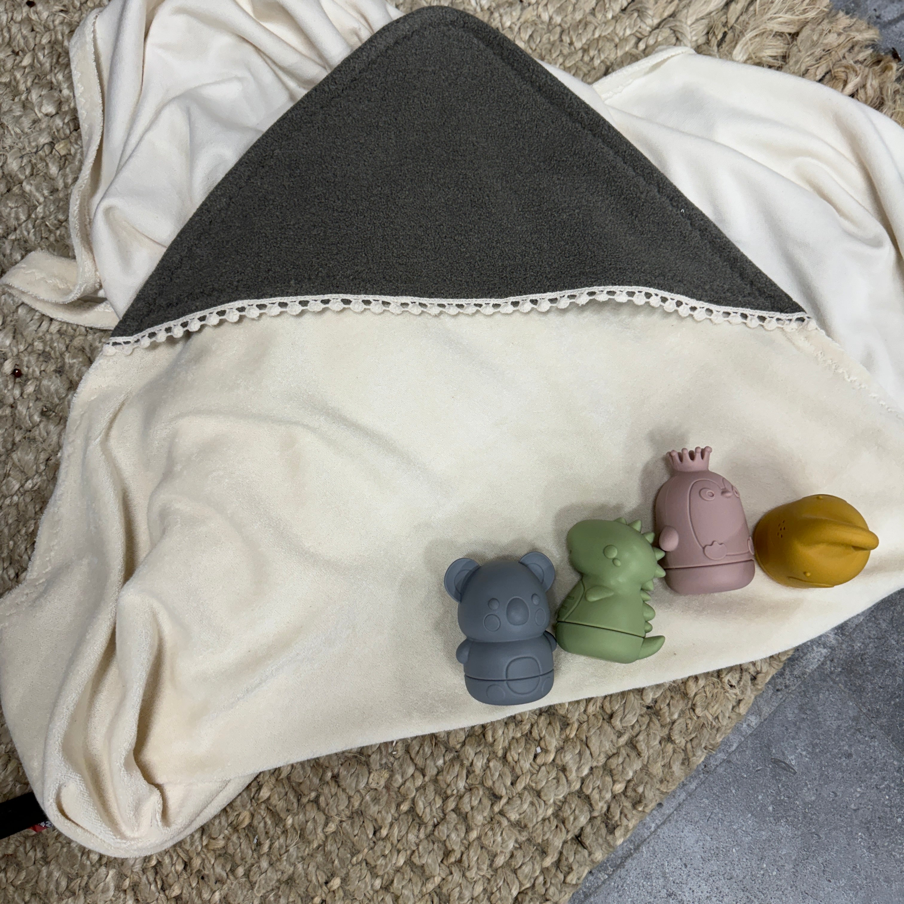 Enveloppez bébé de douceur avec cette serviette de bain moelleuse, dotée d'un coin capuchon intégré pour garder sa petite tête bien au chaud après le bain. Confort et tendresse assurés !description
