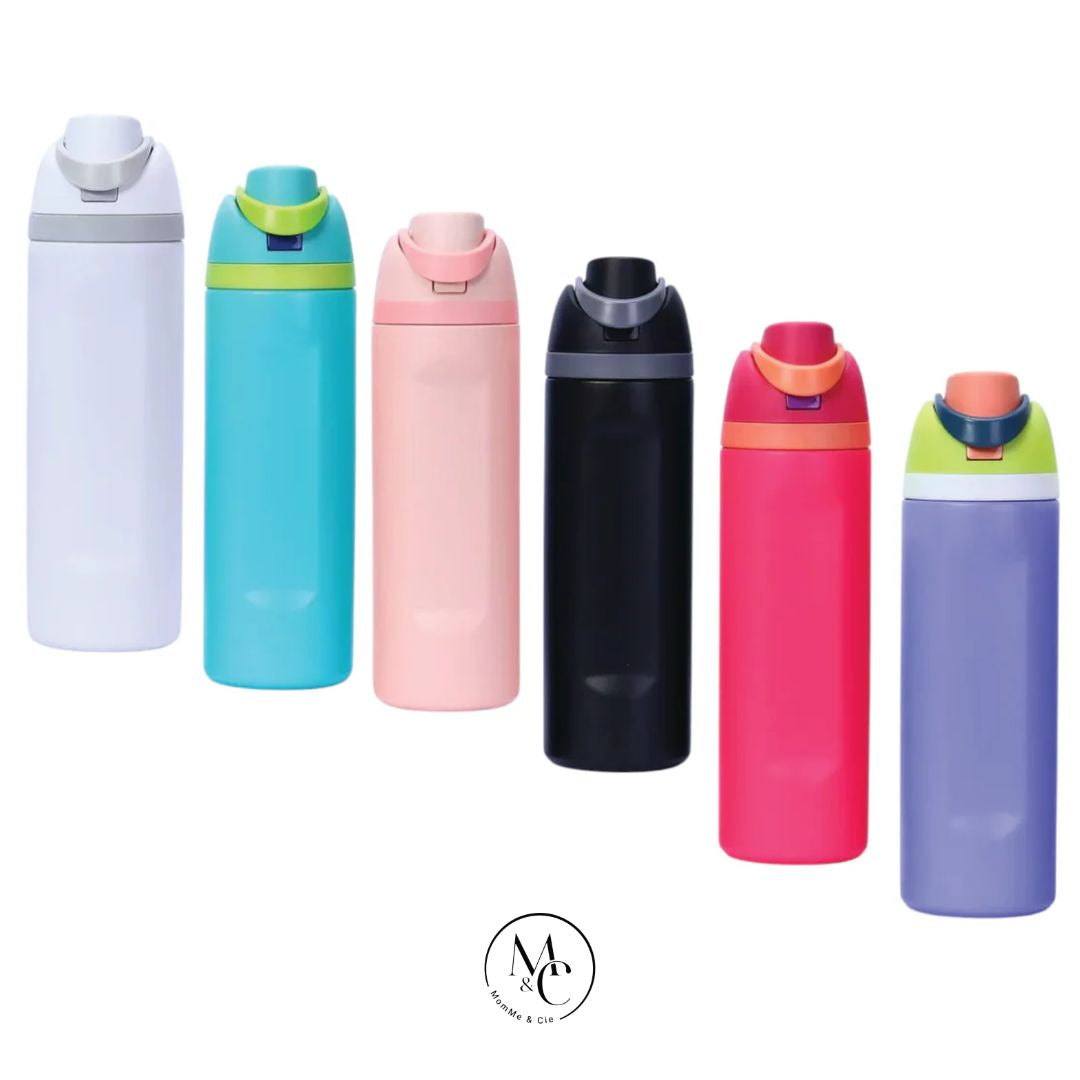 Reste hydraté du matin au soir avec notre bouteille isotherme 24oz, dotée du système FreeSip™ double-fonction. Tu peux boire à la paille intégrée quand tu es en plein mouvement… ou incliner pour prendre une bonne gorgée rapide grâce à son ouverture large.