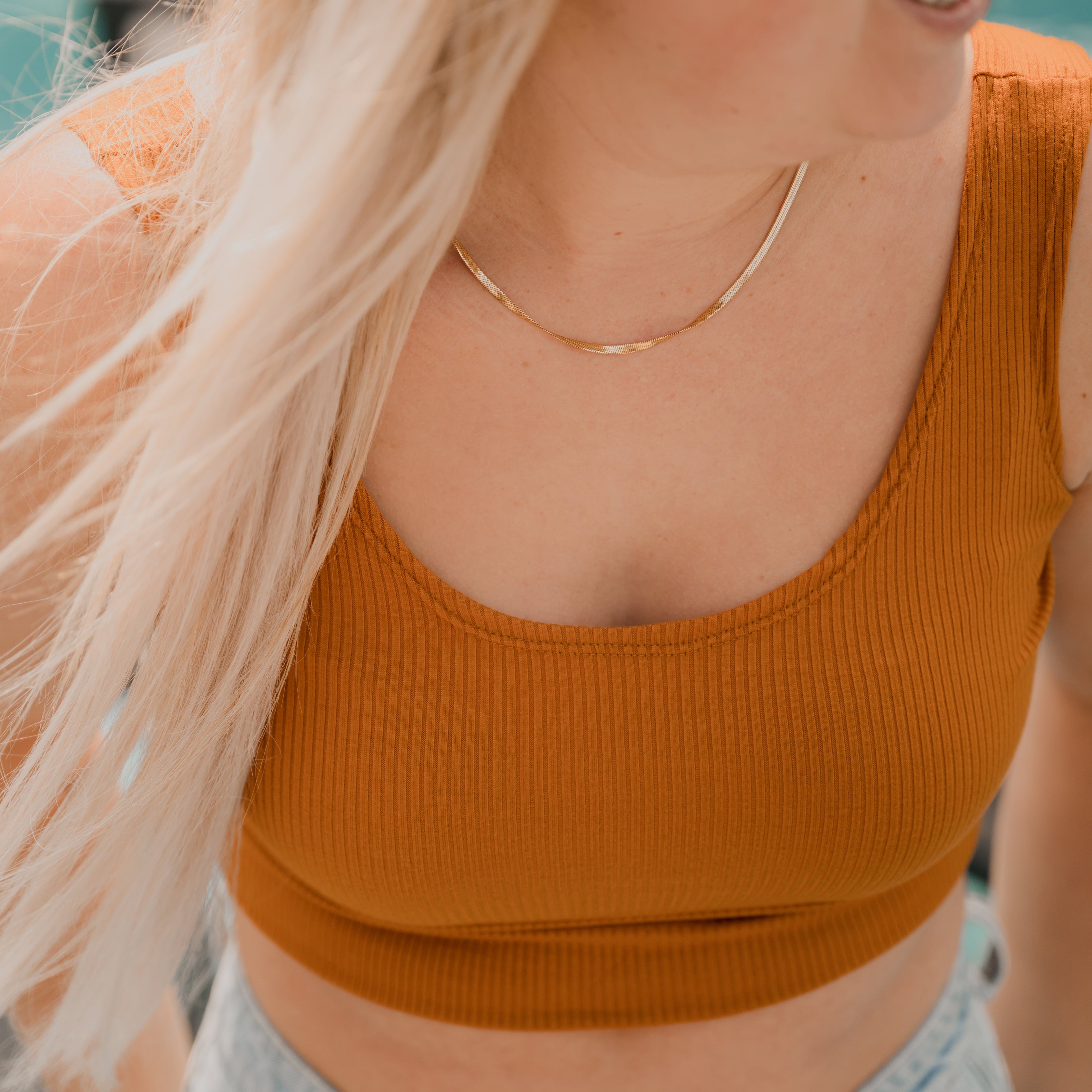 Camisole basic crop Mira ocre pour femme