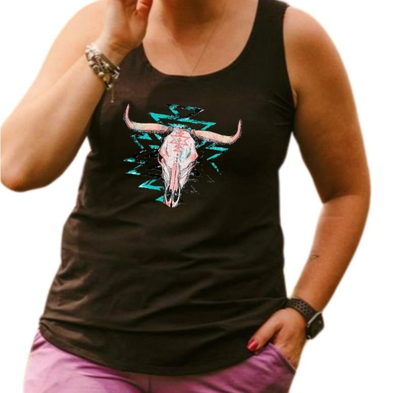 Camisole longue pour femme noire en bambou avec le bas arrondi et les bretelles larges - CRÂNE GÉOMÉTRIQUE