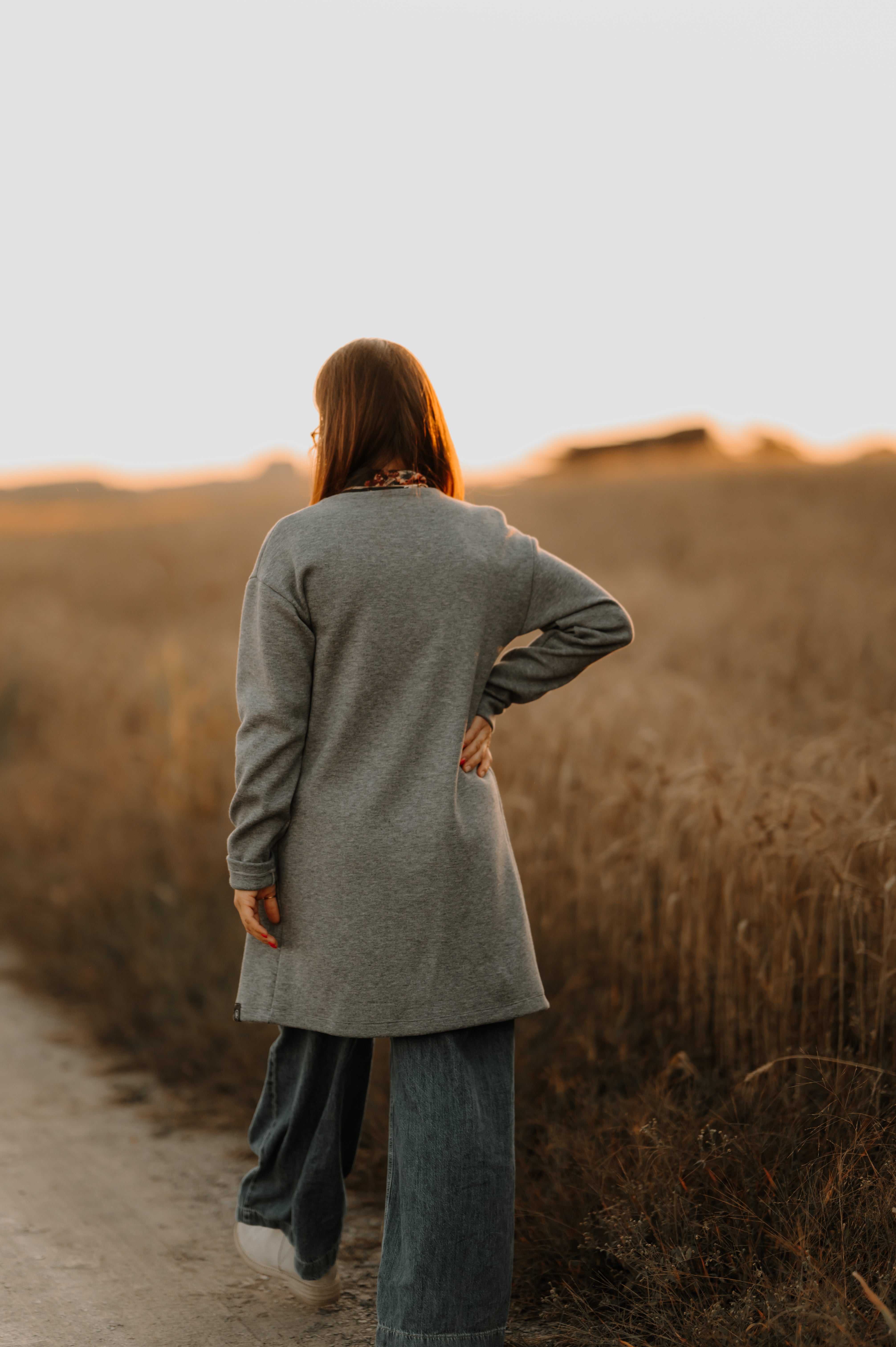 Laisse-toi inspirer par Muse, notre cardigan long gris pensé pour allier élégance et confort. Avec sa coupe droite et minimaliste, il devient un essentiel de ta garde-robe: facile à enfiler, polyvalent et toujours raffiné.