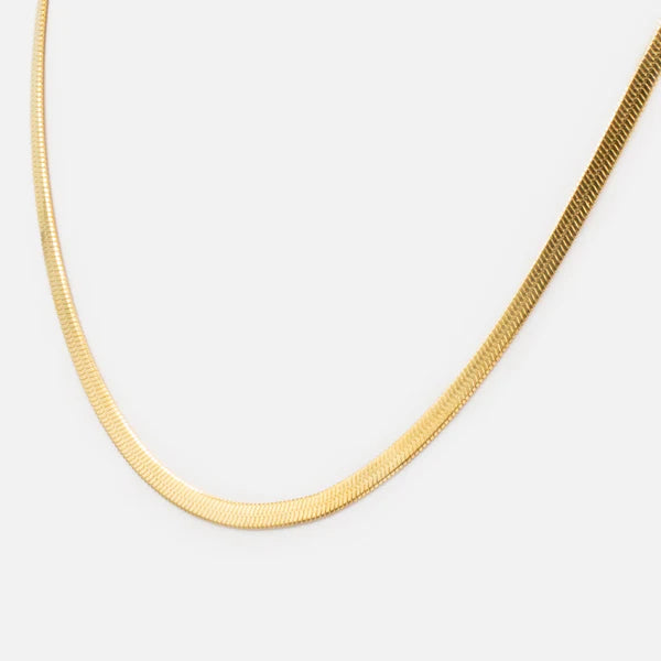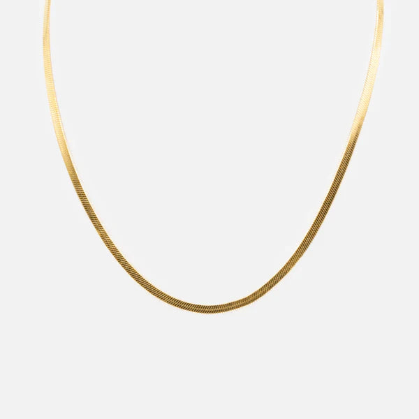 Élégante et intemporelle, cette chaîne dorée à mailles serpent plates est le bijou parfait pour ajouter une touche raffinée à toutes tes tenues. Conçue en acier inoxydable, elle allie durabilité et éclat, pour un accessoire qui traverse les saisons sans perdre de son charme.
