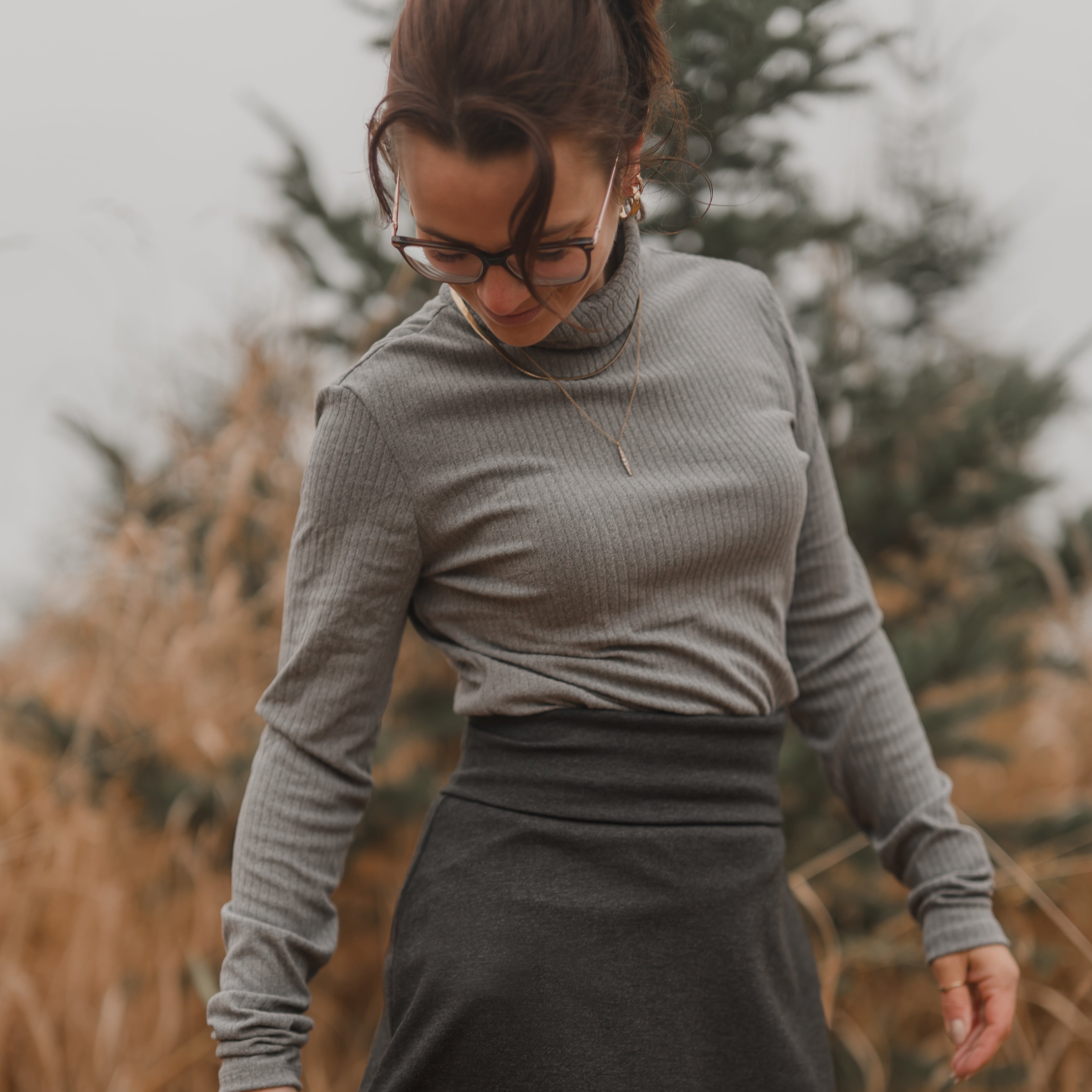 Chandail col roulé à manche longue gris pour femme