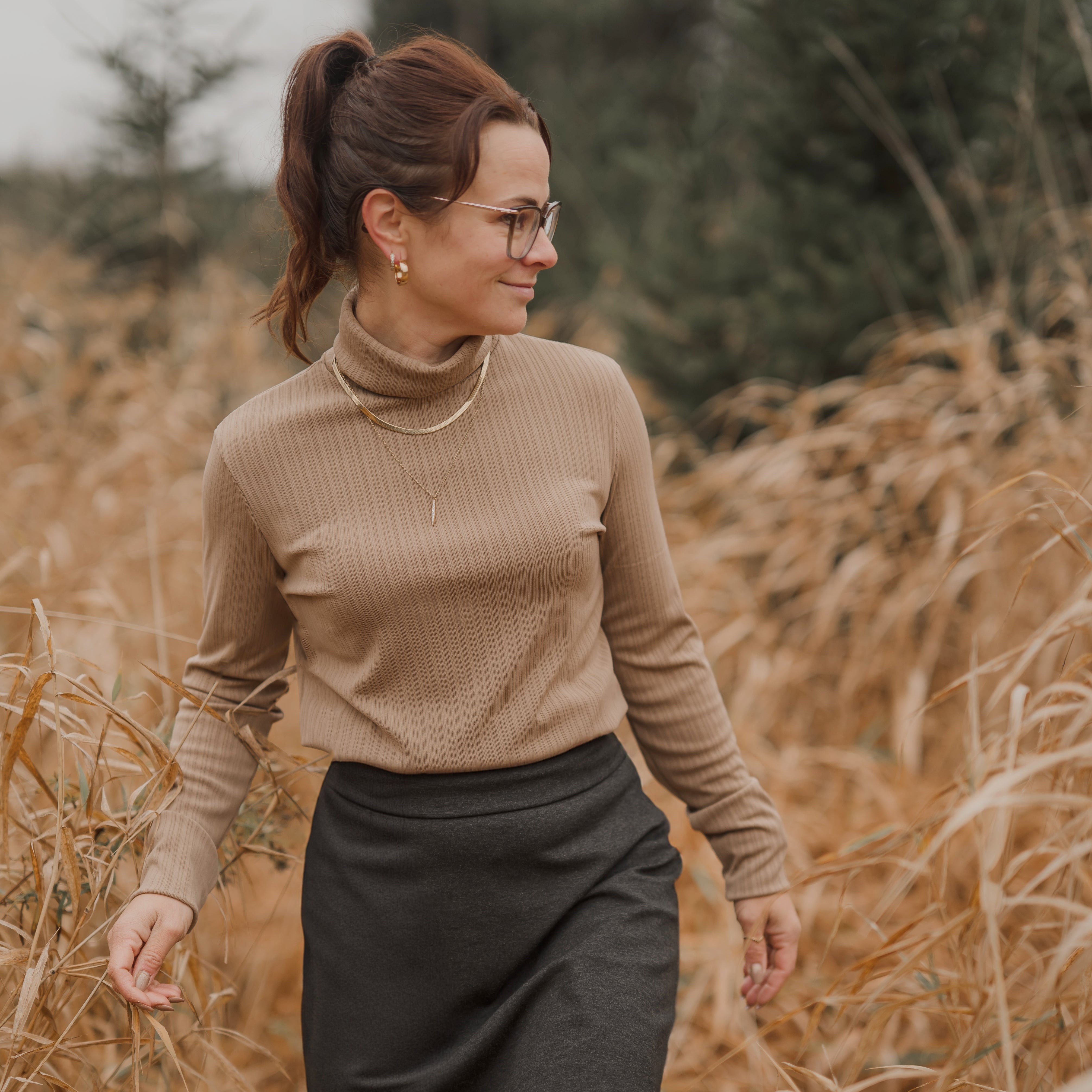 Chandail col roulé à manche longue moka pour femme
