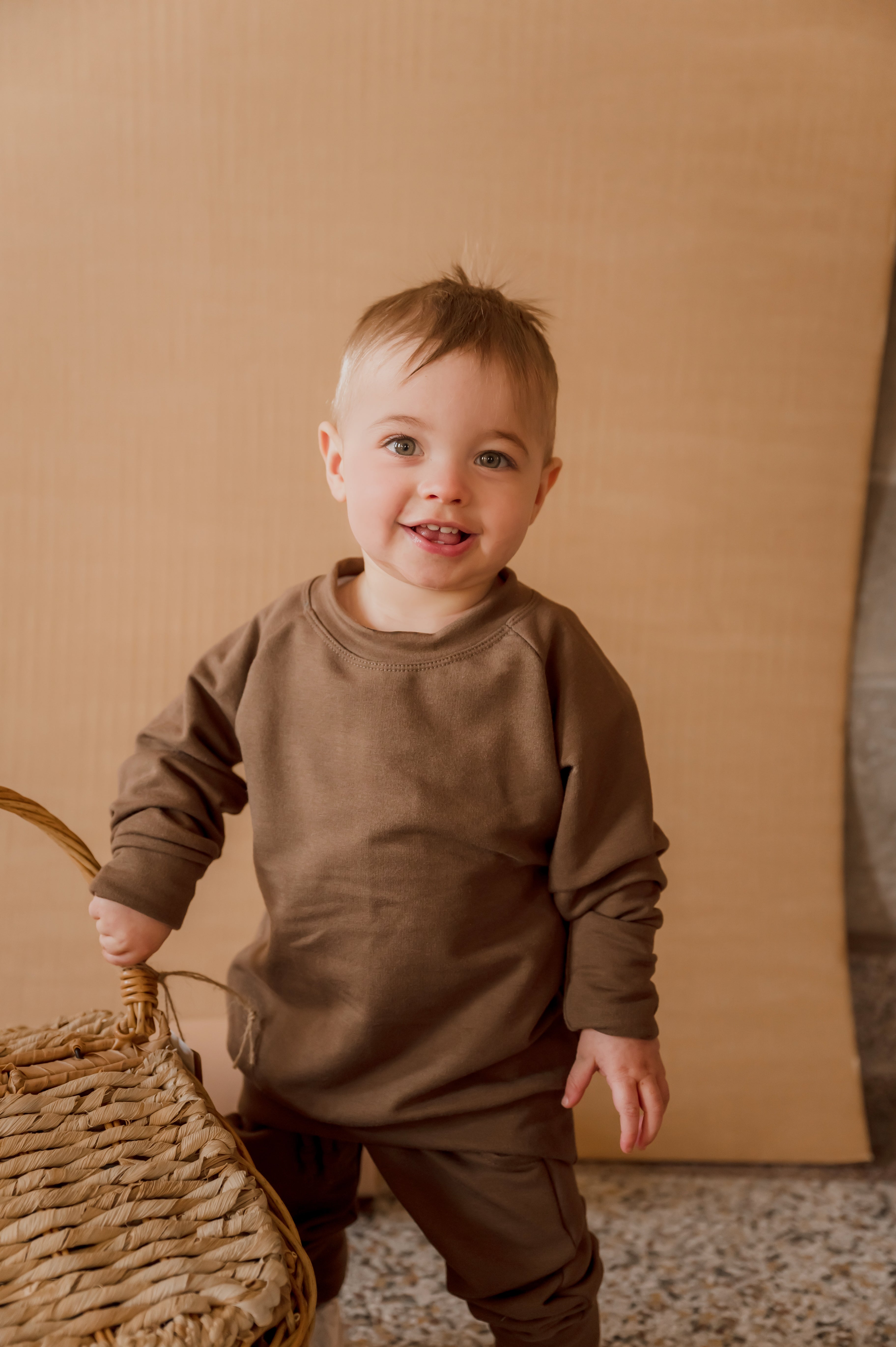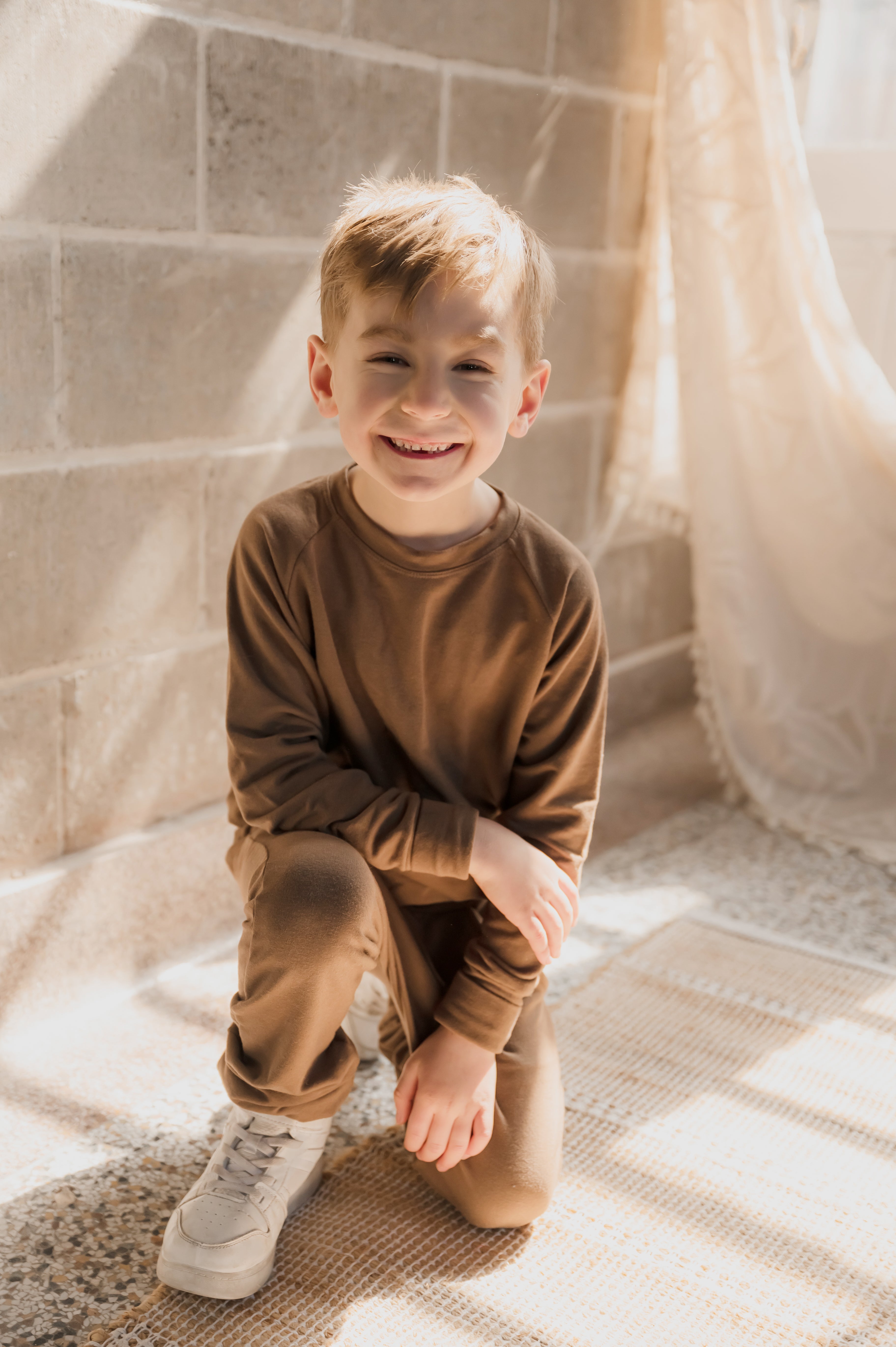 Chandail Crewneck café latté pour enfant et junior à manche longue en bambou