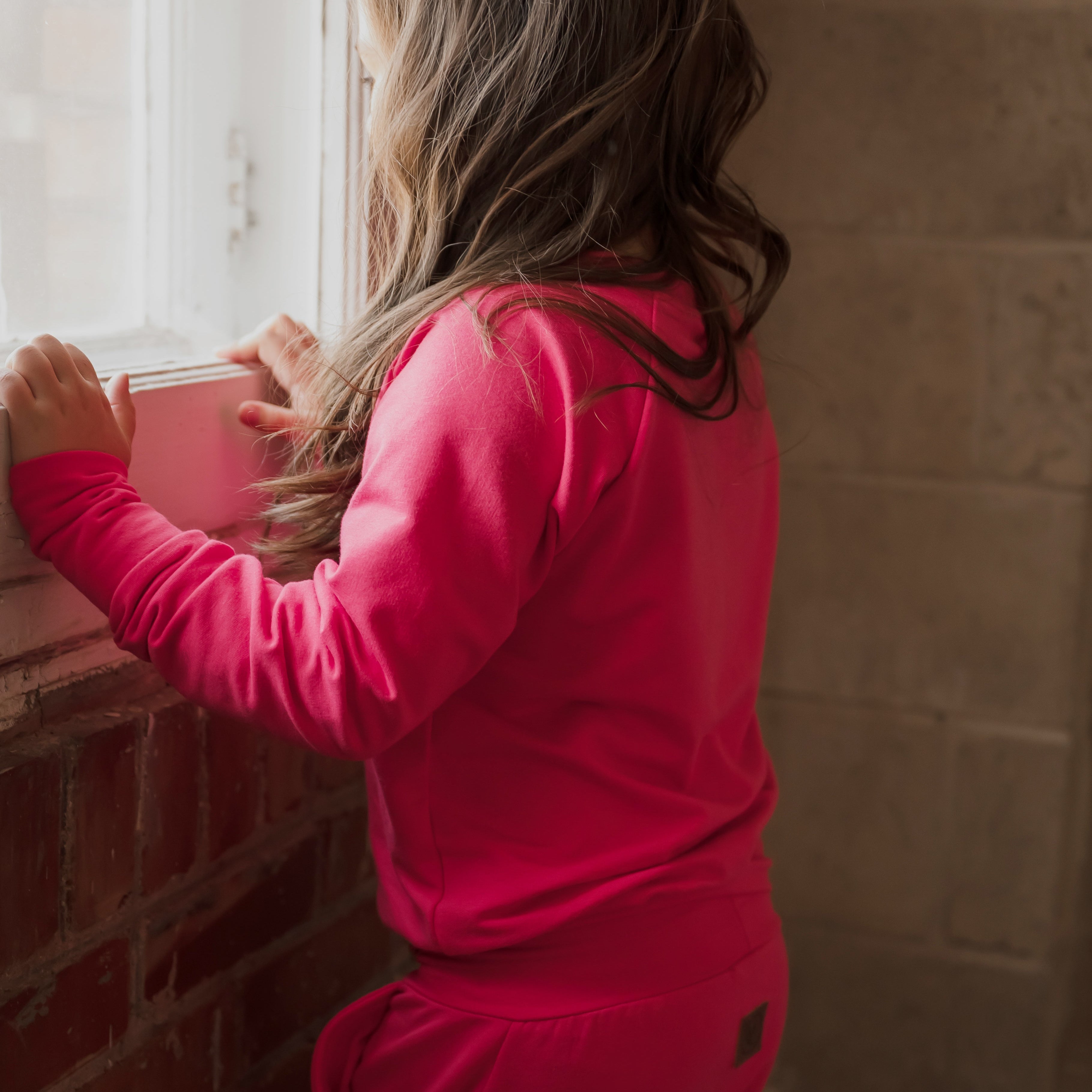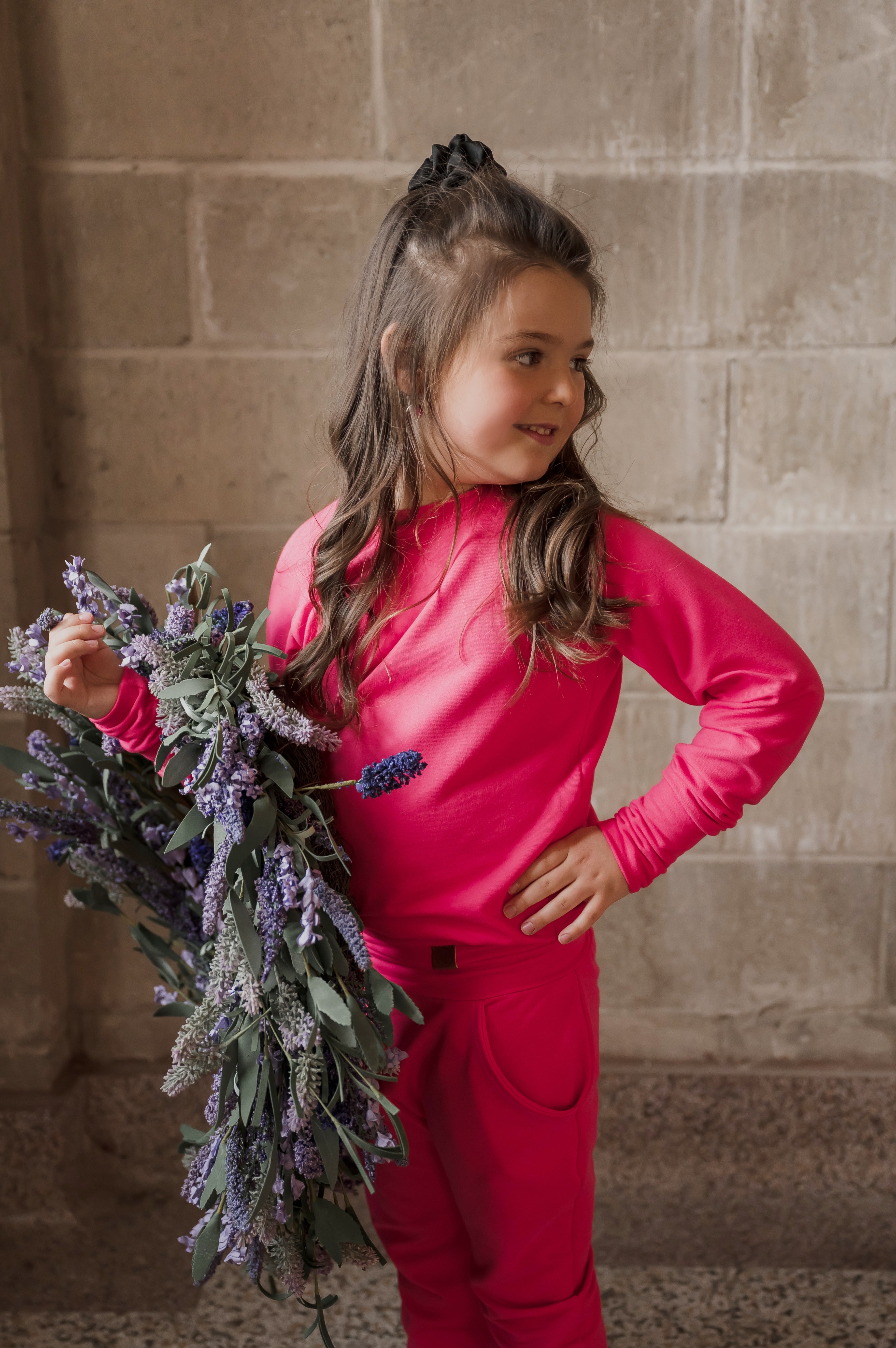 Chandail Crewneck rose sorbet pour enfant et junior à manche longue en bambou