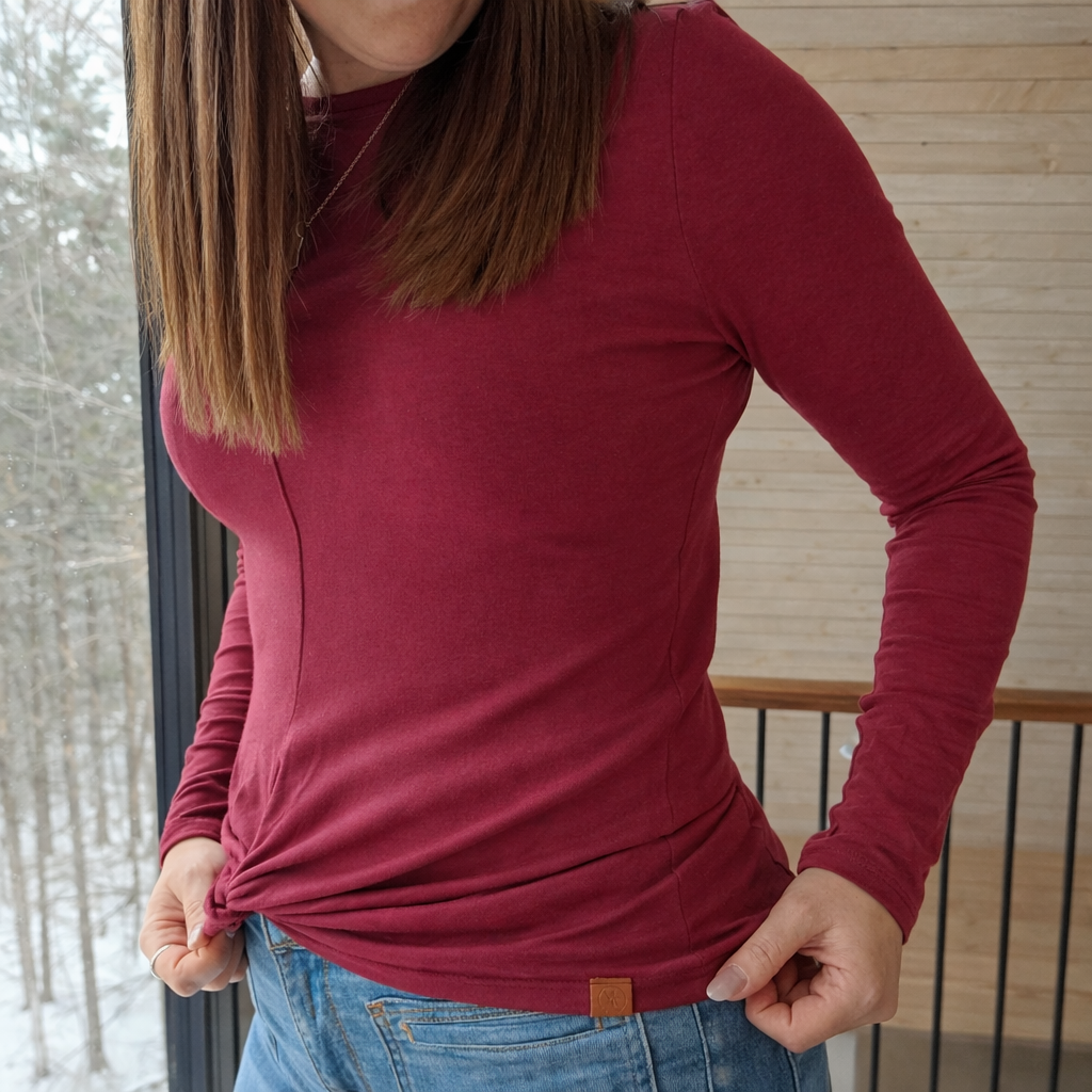 Avec ce chandail croisé à col rond en bambou noir, vous pouvez allier l'élégance et le bien-être au quotidien. Vous vous sentirez à la fois chic et respectueuse de la nature.
