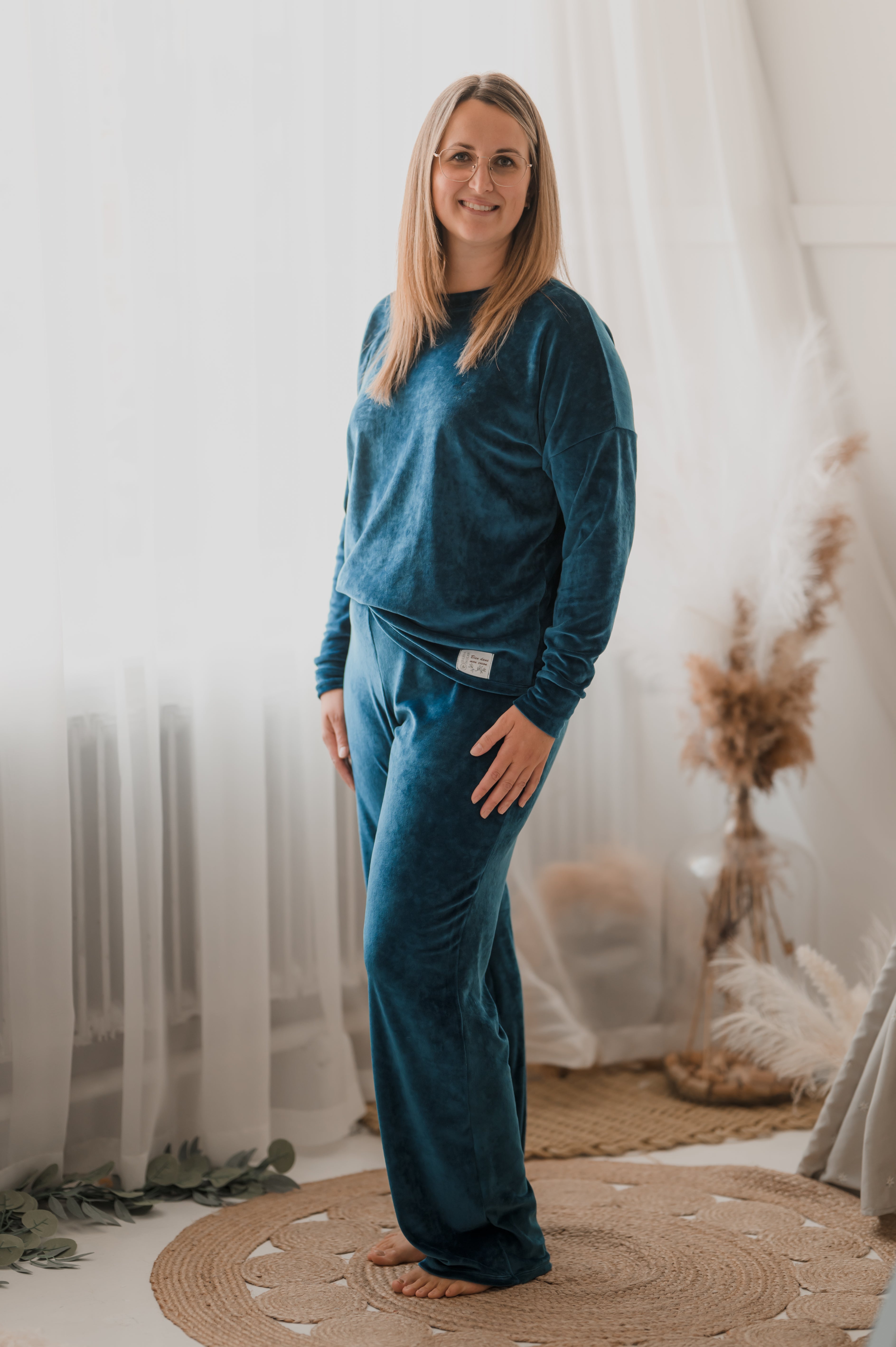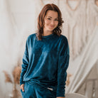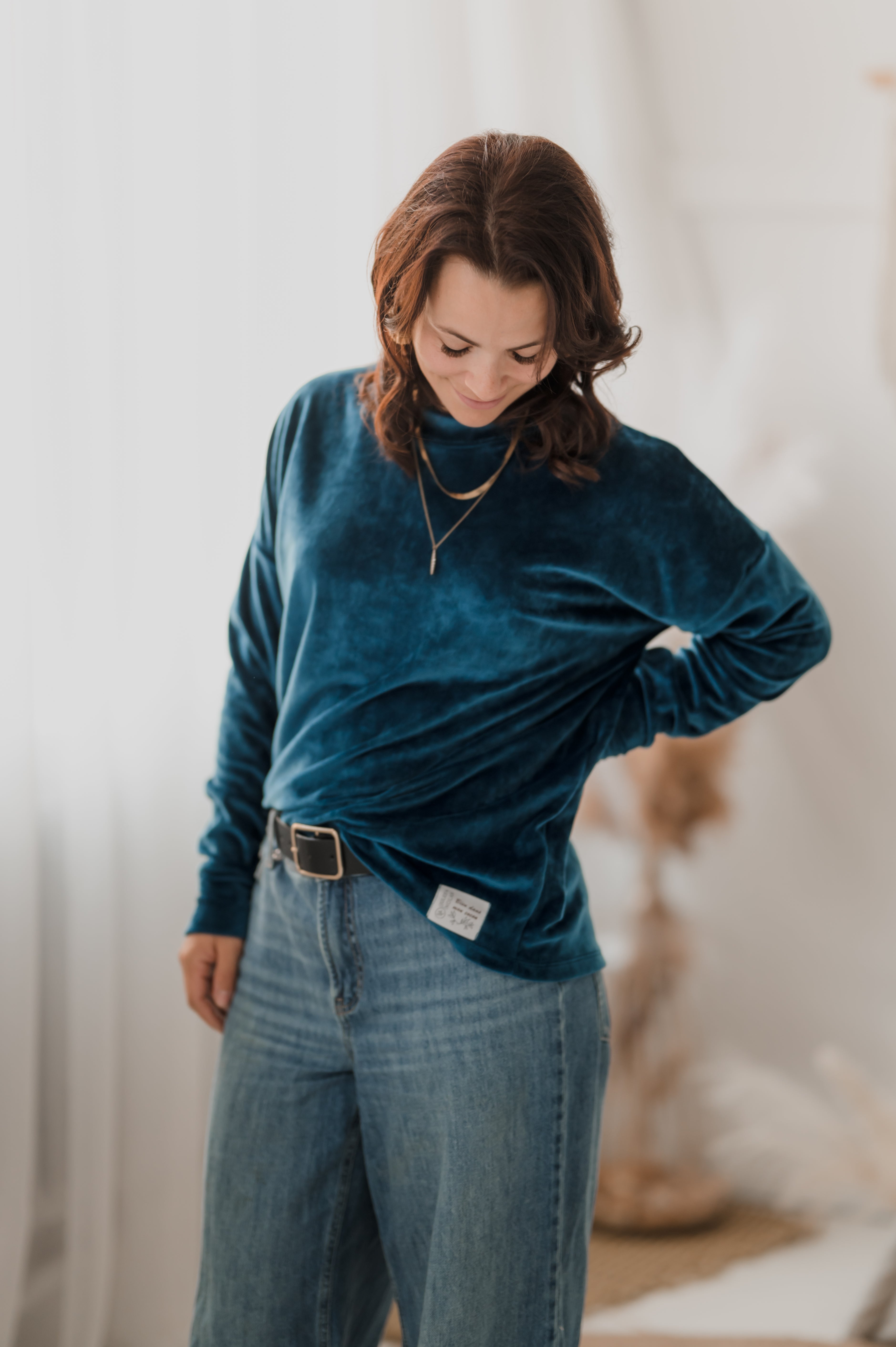 Chandail détente à manche longue bleu pétrole pour femme, idéal pour la maternité
