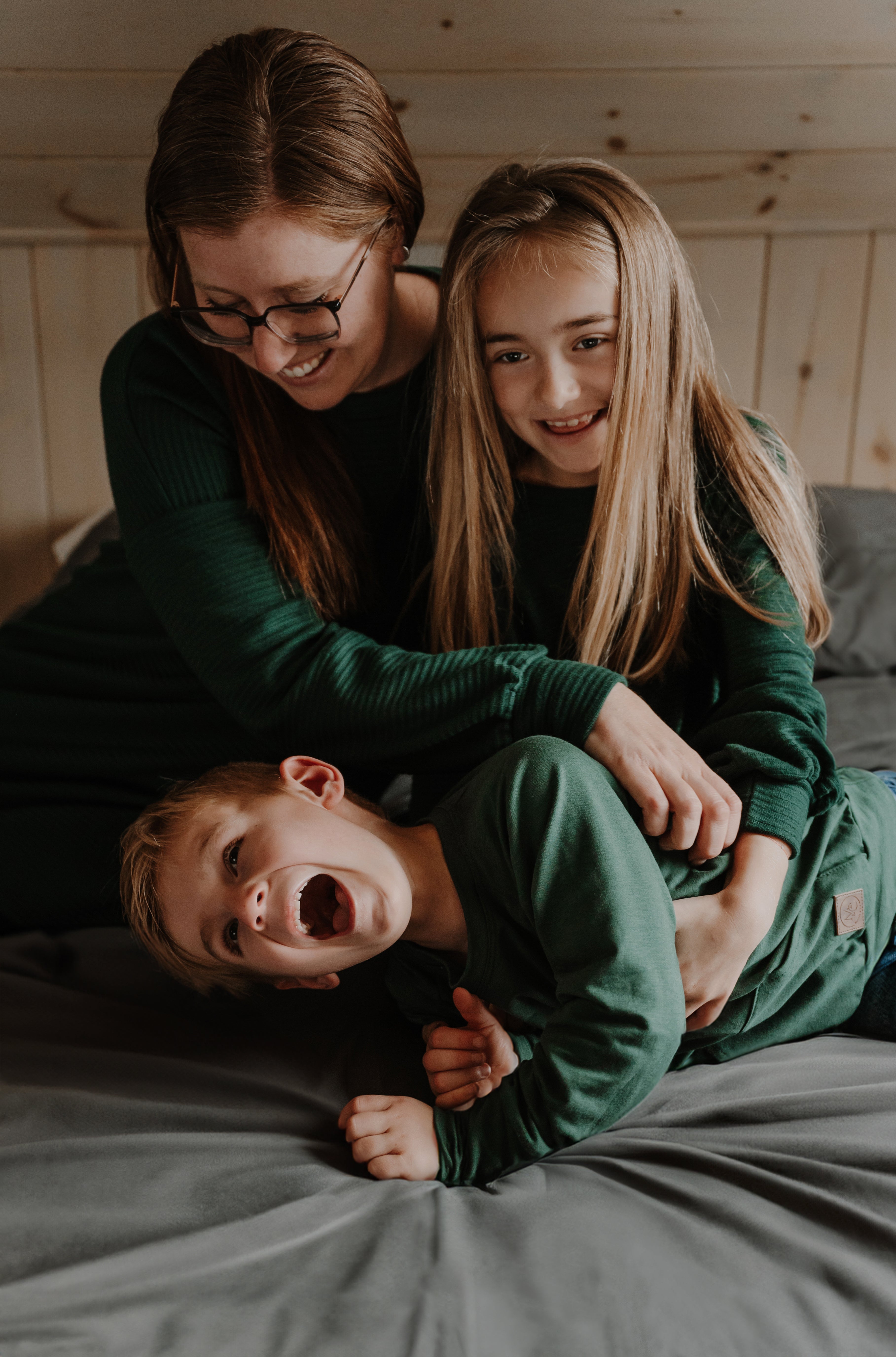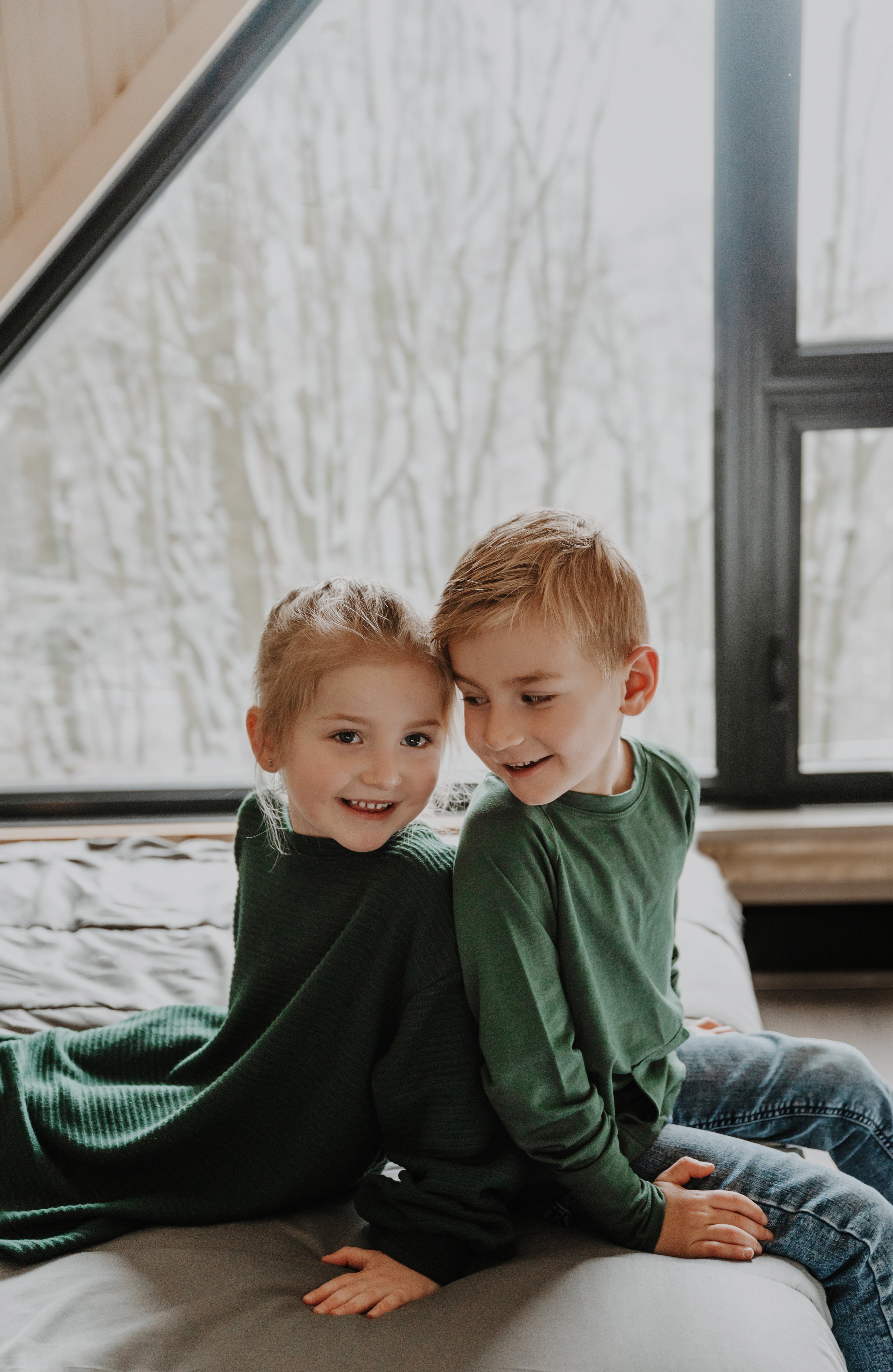 Chandail détente à manche longue vert uni avec bande à la taille pour bébé et enfant, grandeurs 3 mois à 6 ans