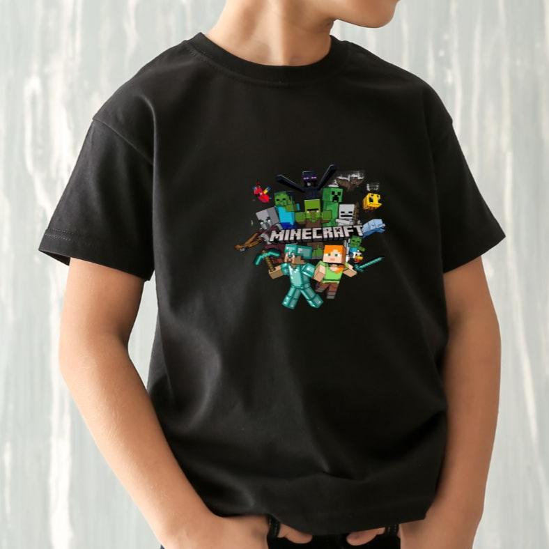 Chandail manche courte noir en bambou, grandeurs 2 à 16 ans - MINECRAFT