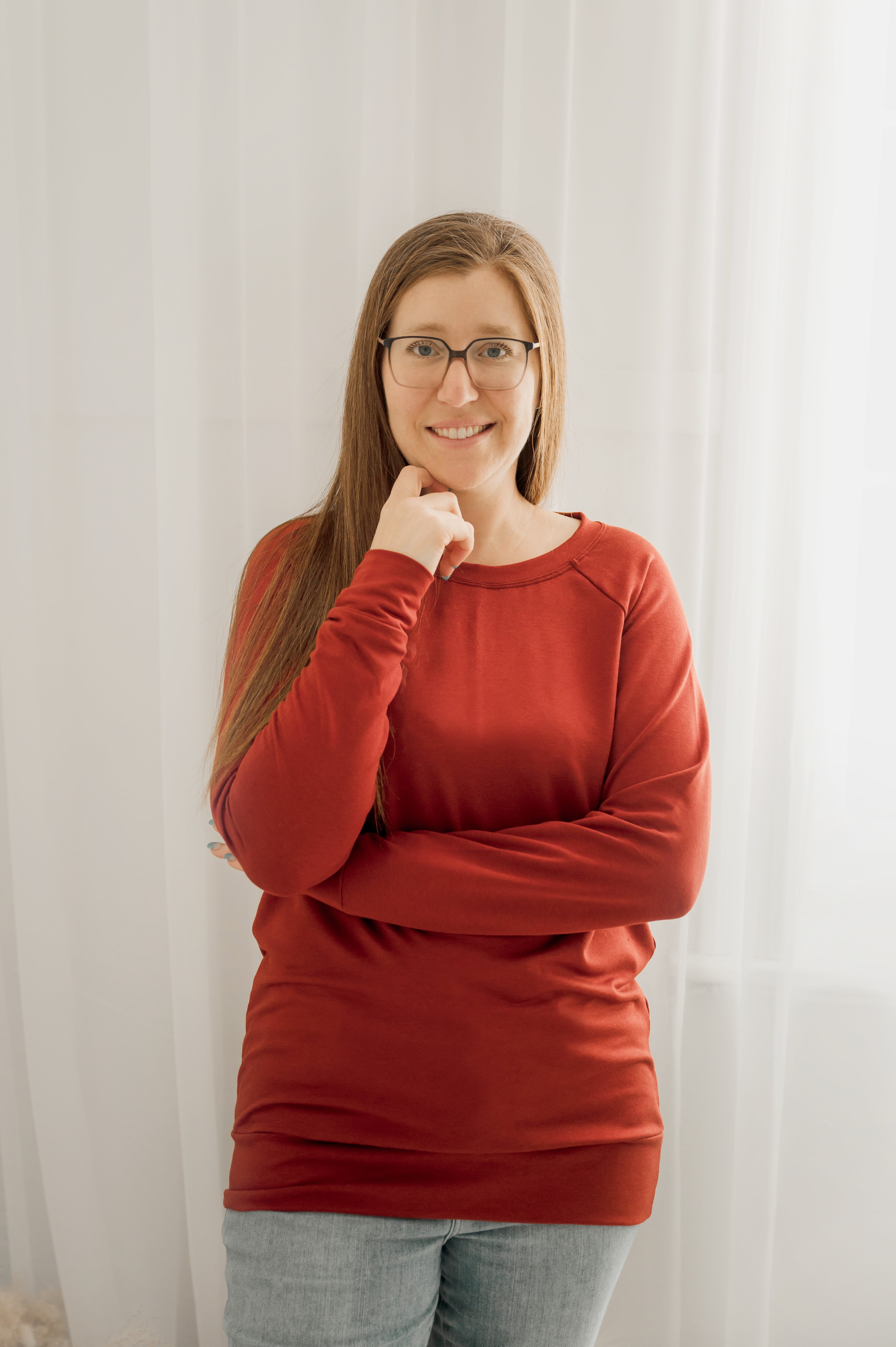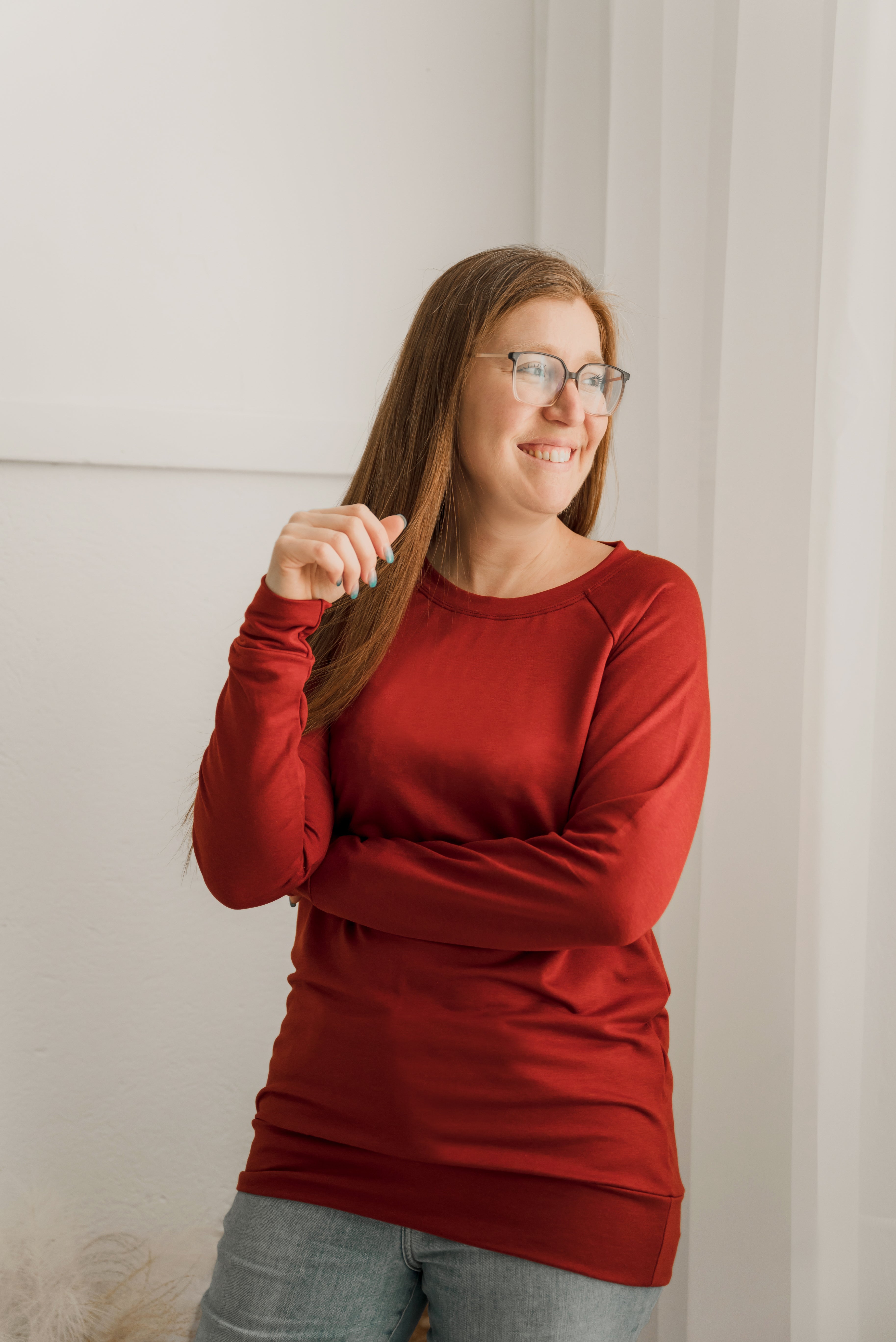 Chandail reglan Camille brique à manche longue en bambou avec bande à la taille pour femme