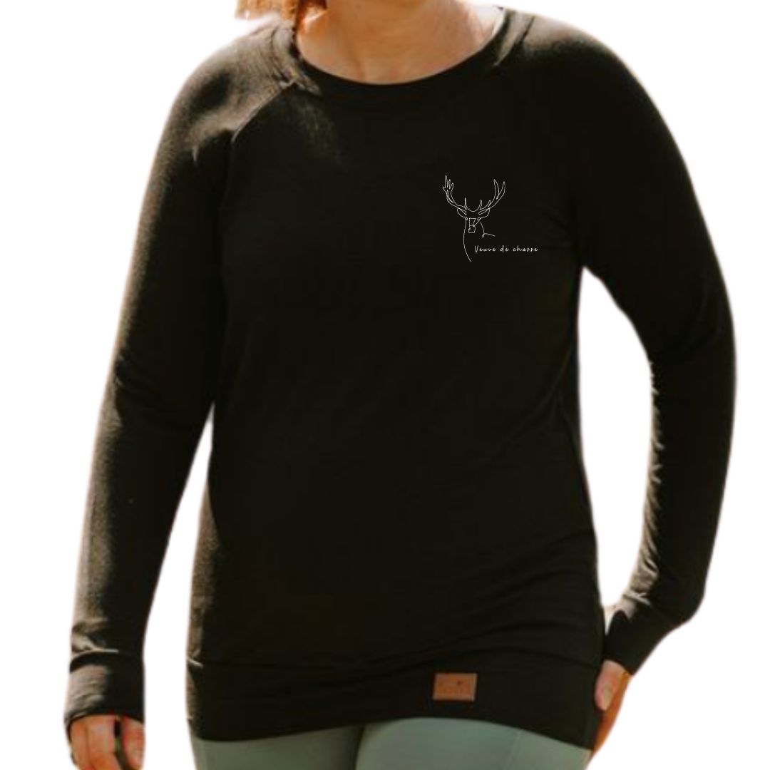 Chandail reglan Camille manche longue en bambou noir avec bande à la taille pour femme - VEUVE DE CHASSE