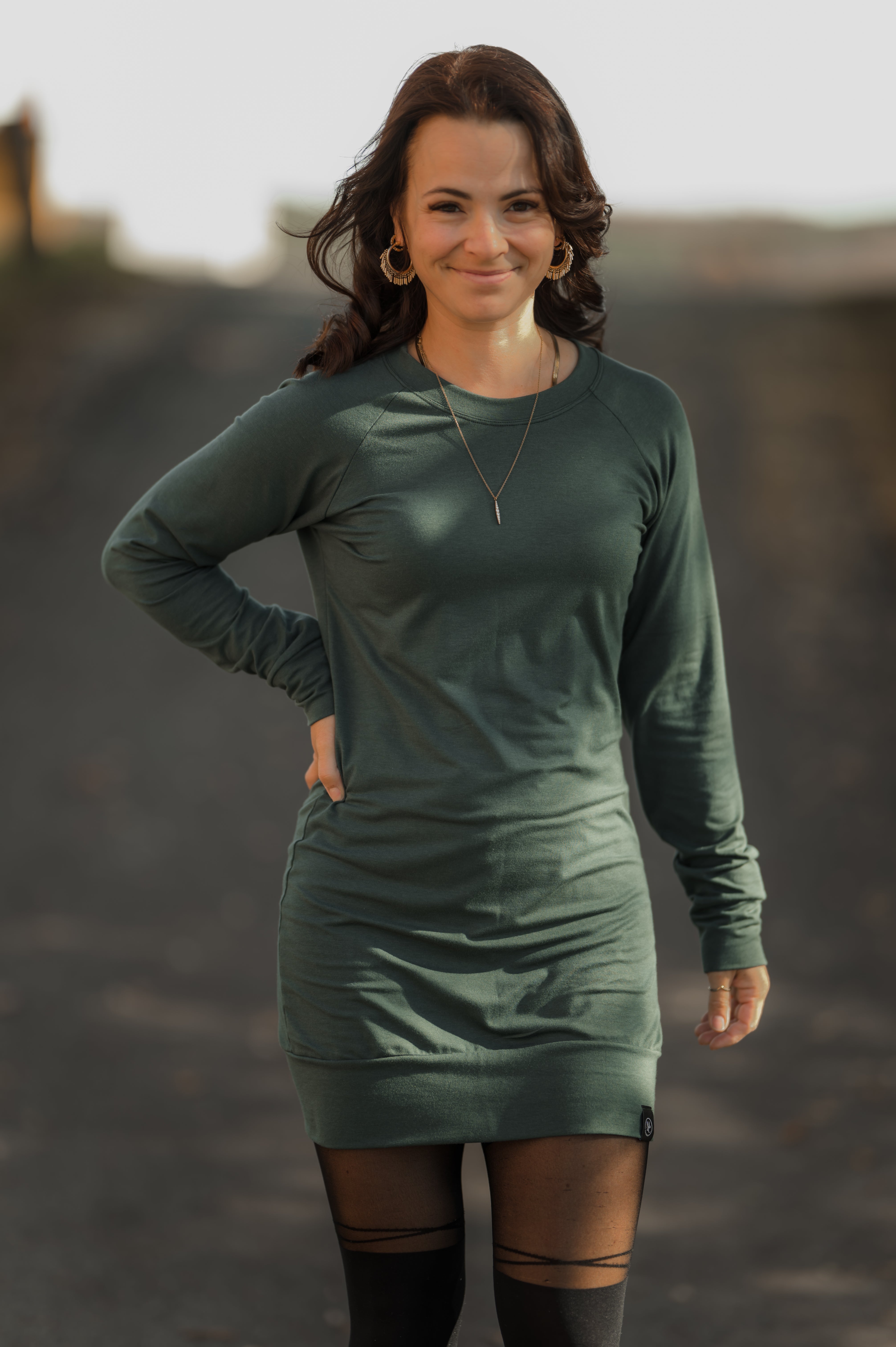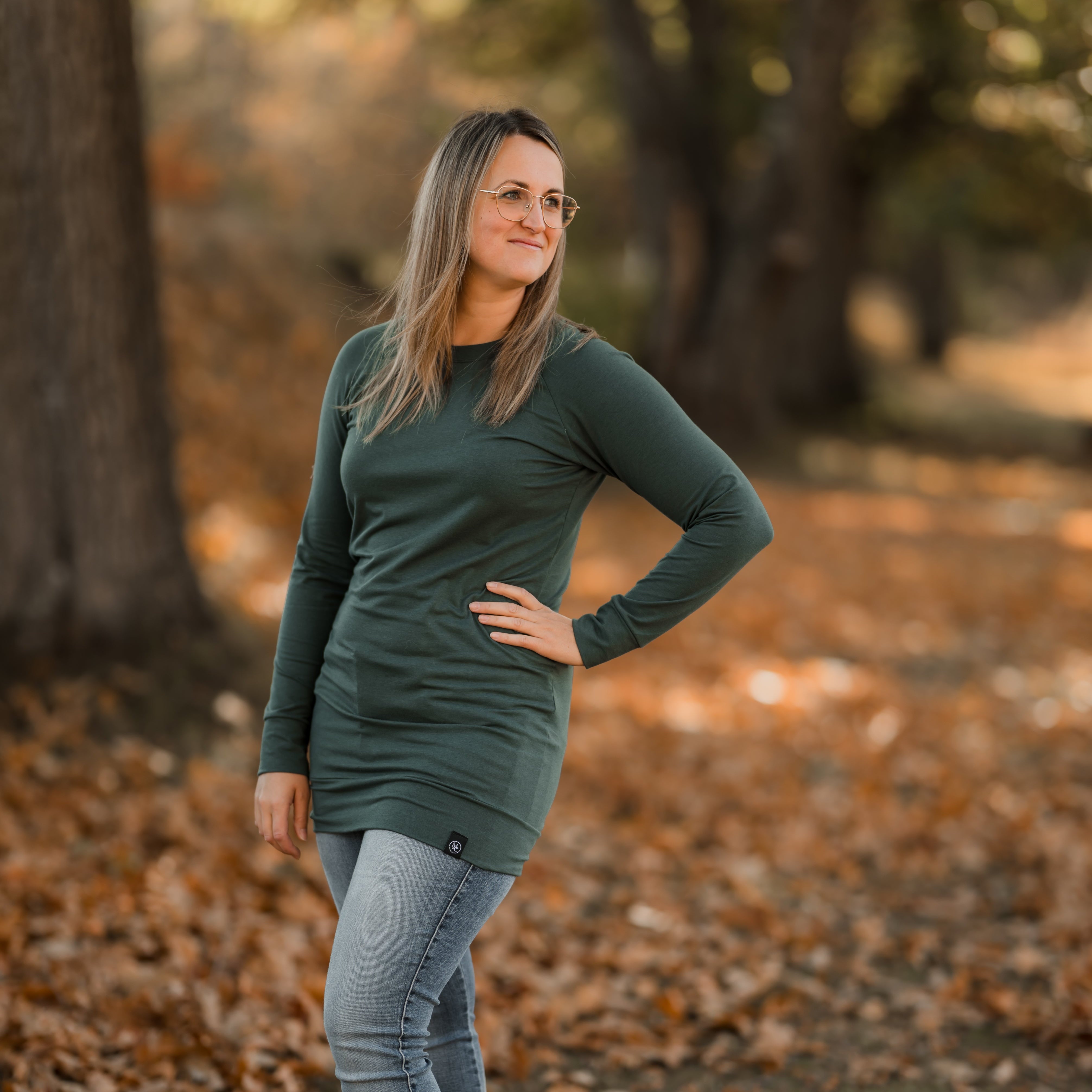 Chandail tunique Claudia vert boréal manche longue pour femme
