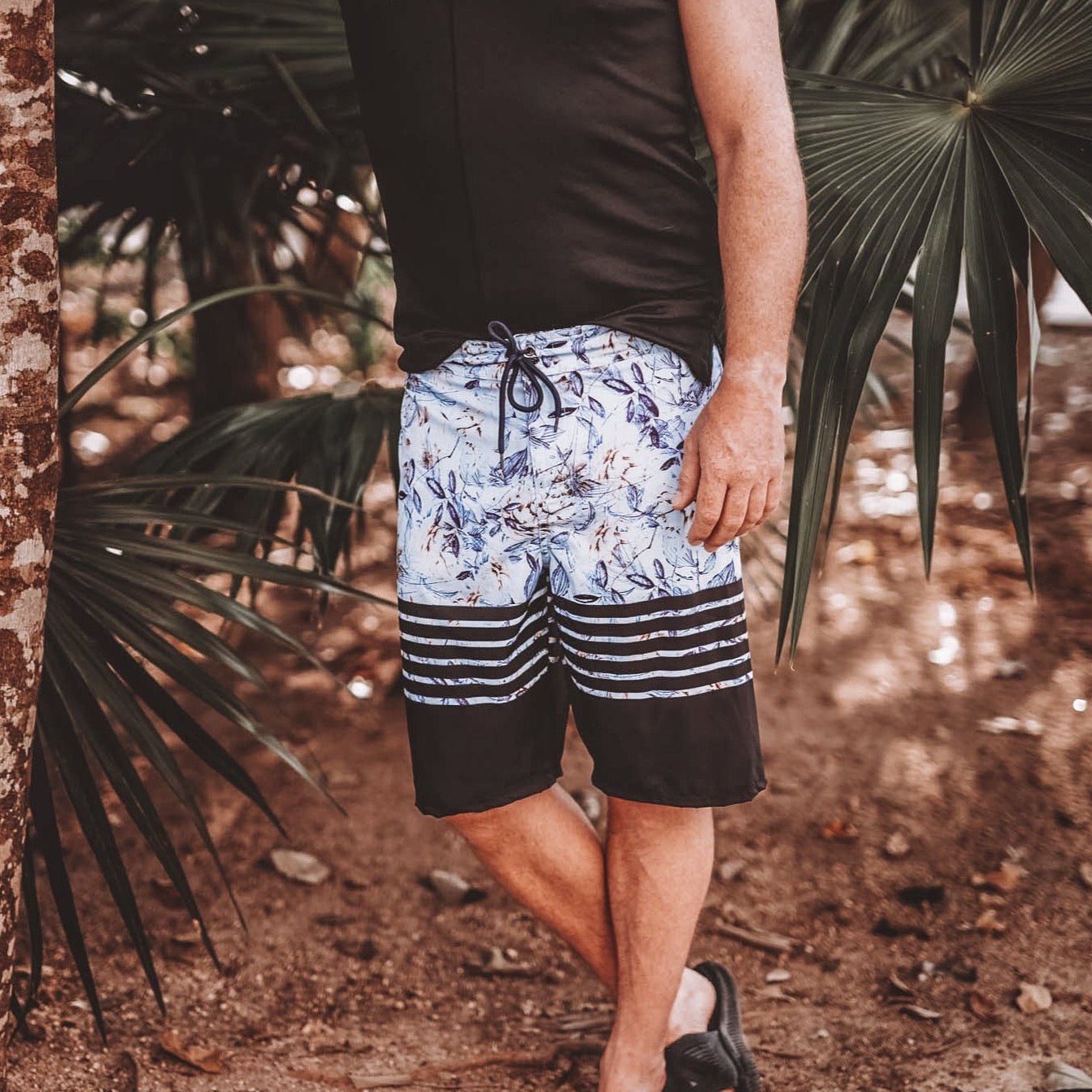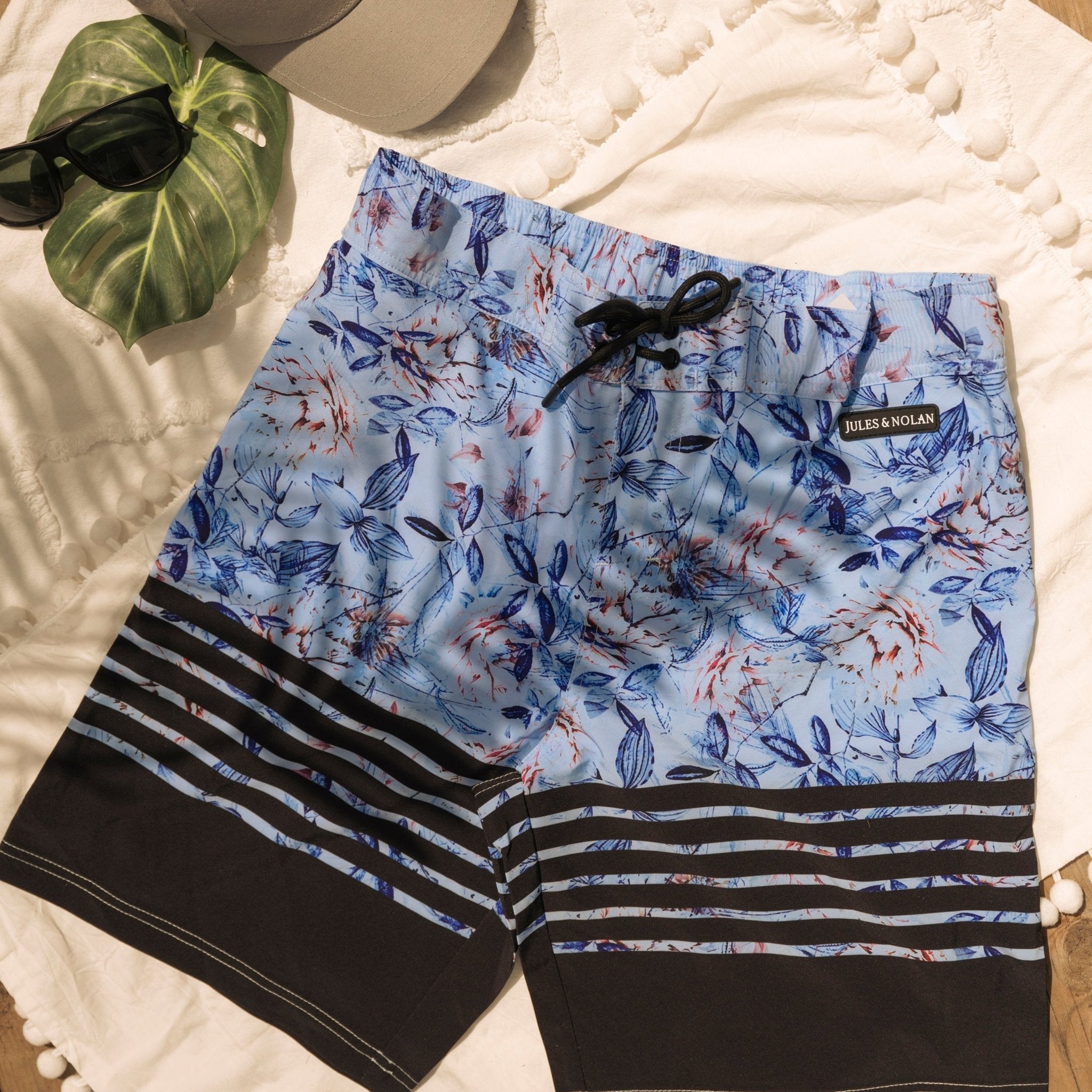 Jules & Nolan - Short Maillot de bain pour homme - Noir/Floral bleu (fin saison)