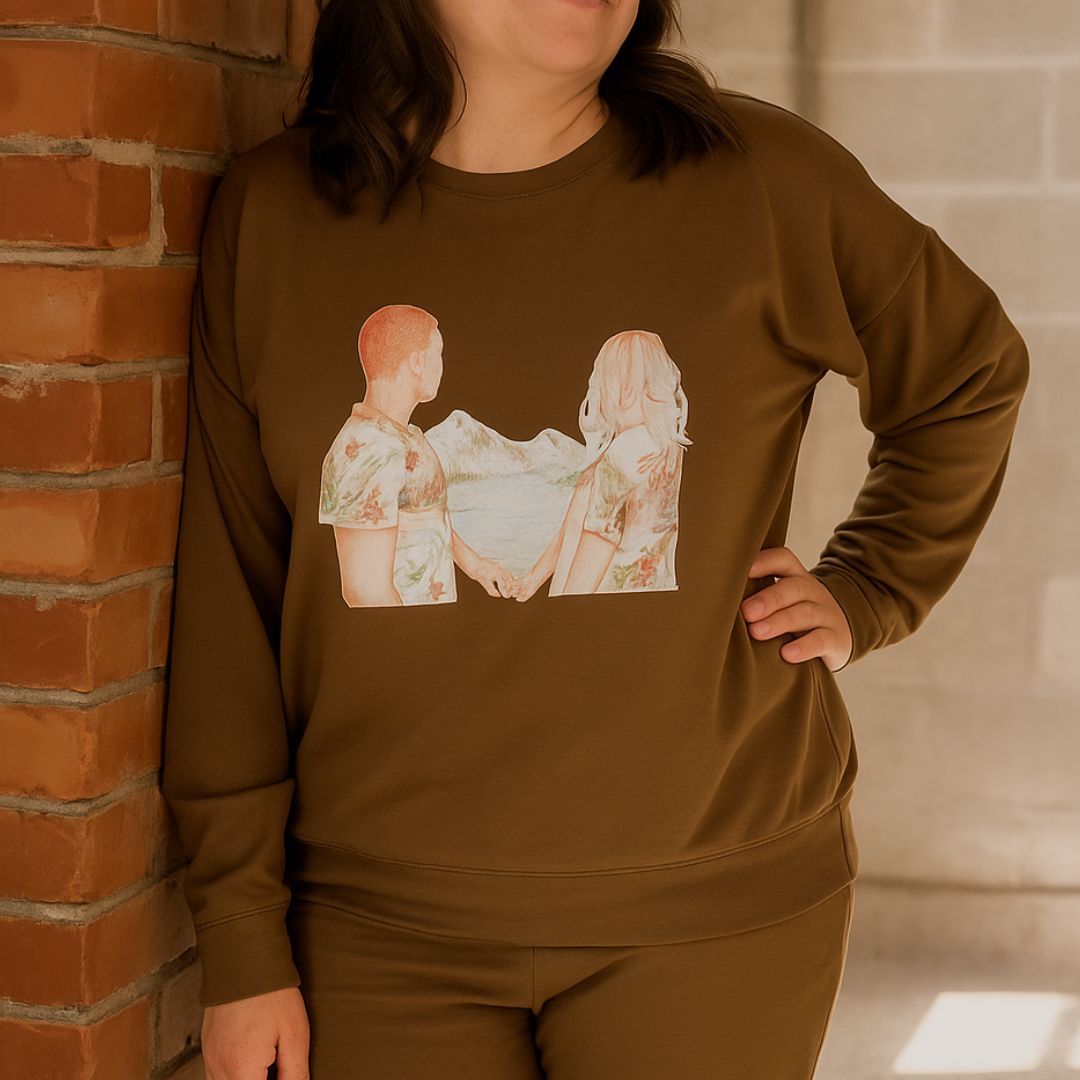 Crewneck pour femme en bambou café latté - Impression À la rencontre