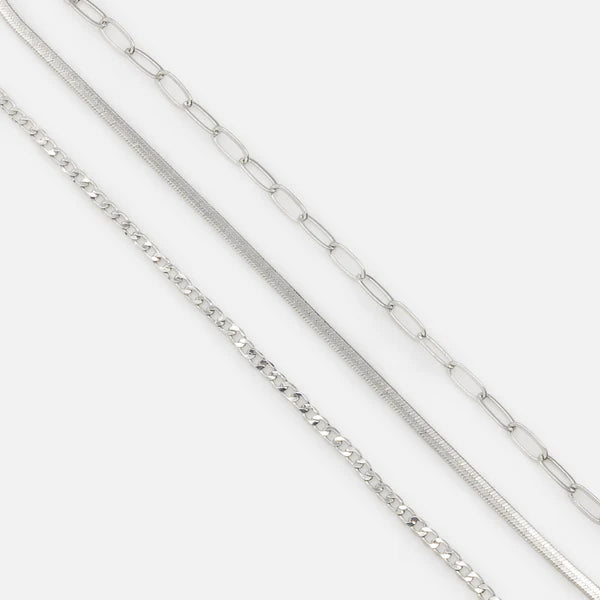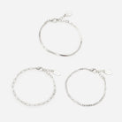 Apportez une touche d’élégance subtile à vos looks avec cet ensemble de trois bracelets argentés. Chacun présente un style de mailles distinct – fines, modernes et raffinées – pour un effet délicat et tendance. À porter seuls pour un look minimaliste ou superposés pour plus de caractère, ils s’adaptent à toutes les occasions. Un choix polyvalent et intemporel qui complète parfaitement votre collection de bijoux.