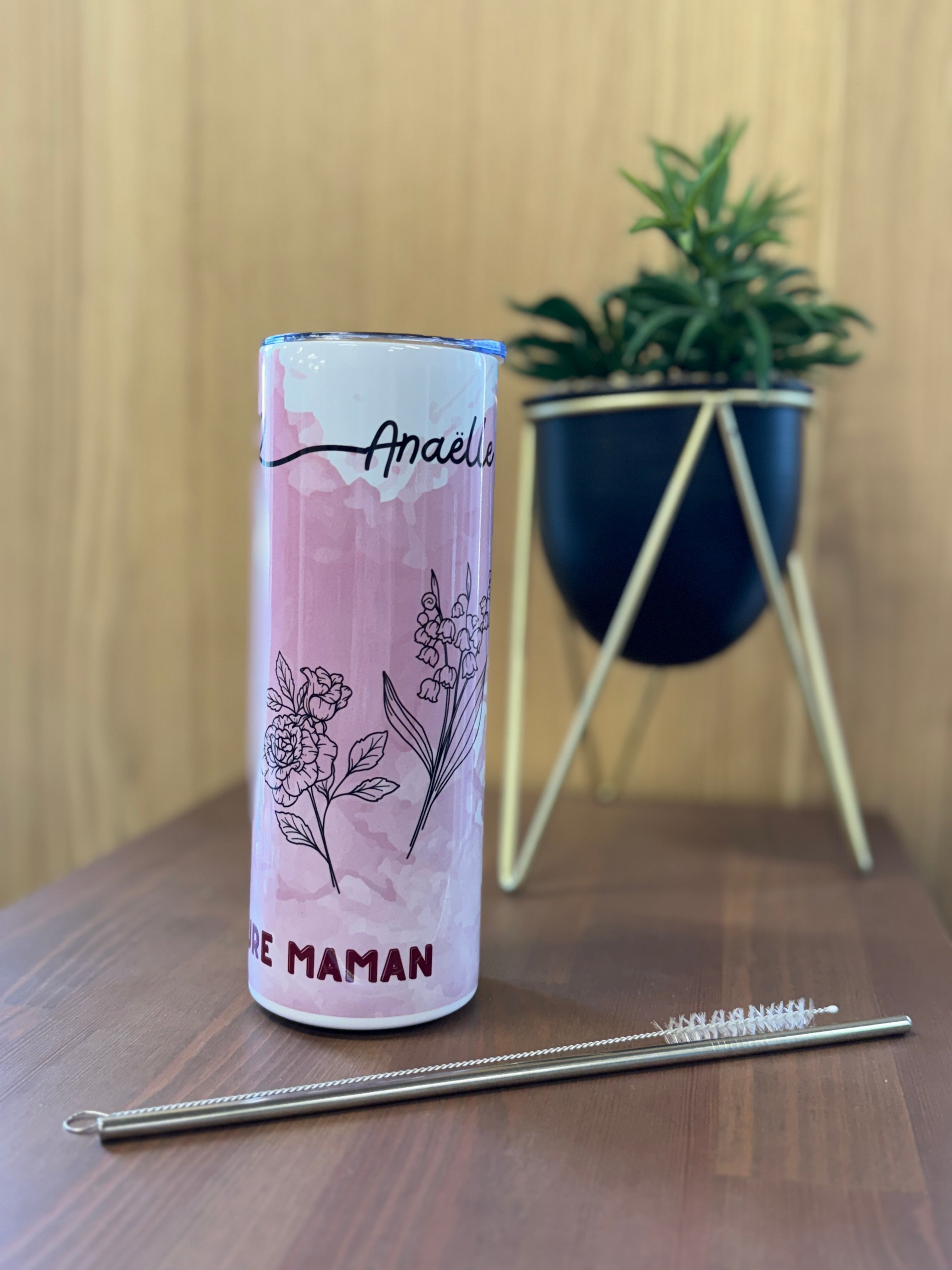 Gobelet isolant 20 oz **Personnalisé** Fleur de naissance et prénoms