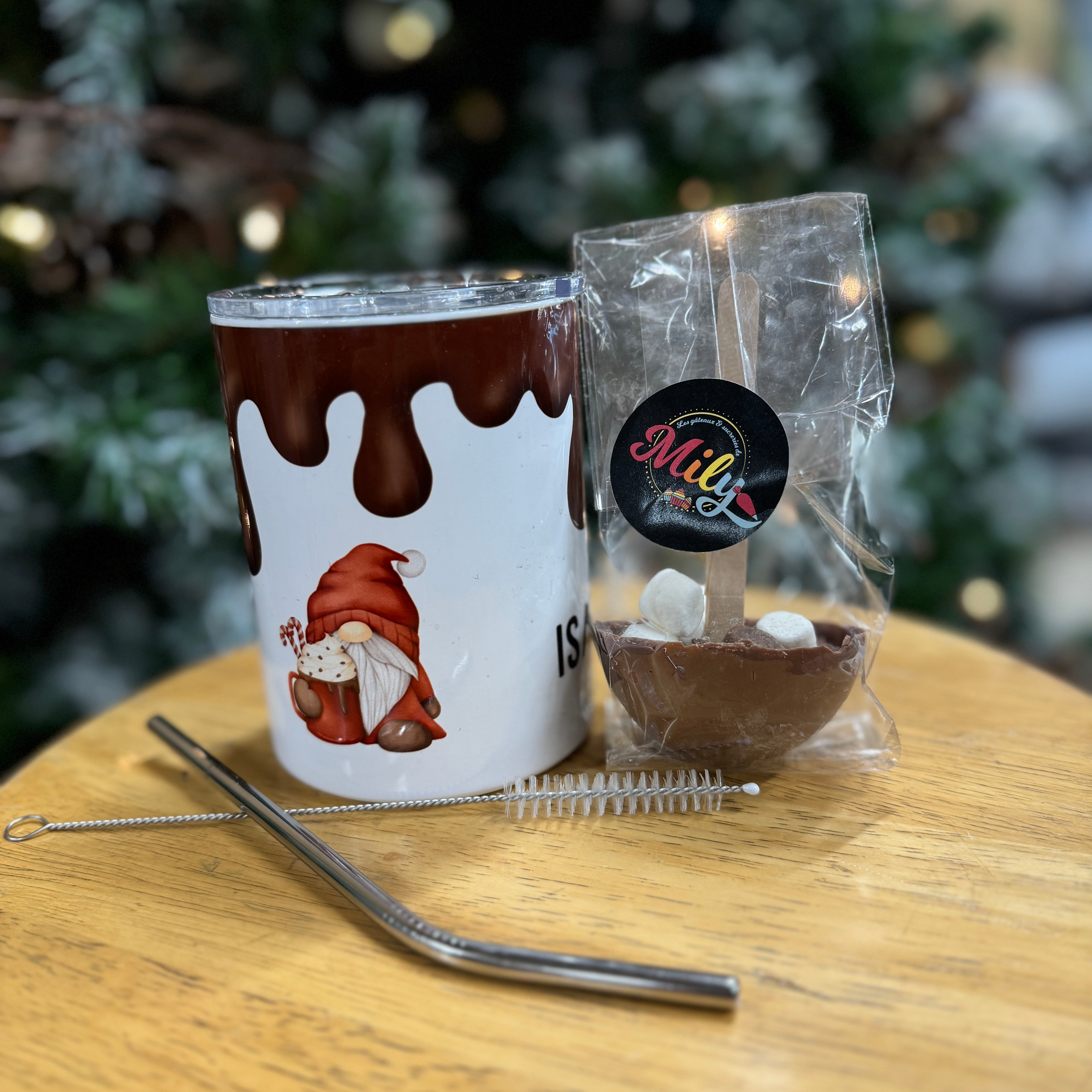 Vous avez également la possibilité de vous procurer l'ensemble complet Kit à chocolat chaud. Cet ensemble inclut le gobelet 12 oz ainsi qu'une bombe de chocolat chaud prête à être dégustée!