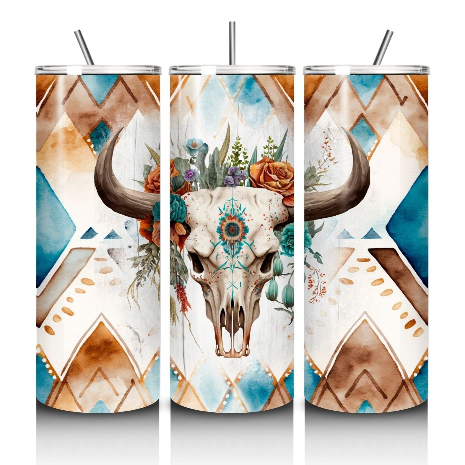 Gobelet isolant 20 oz - Crâne floral aquarelle