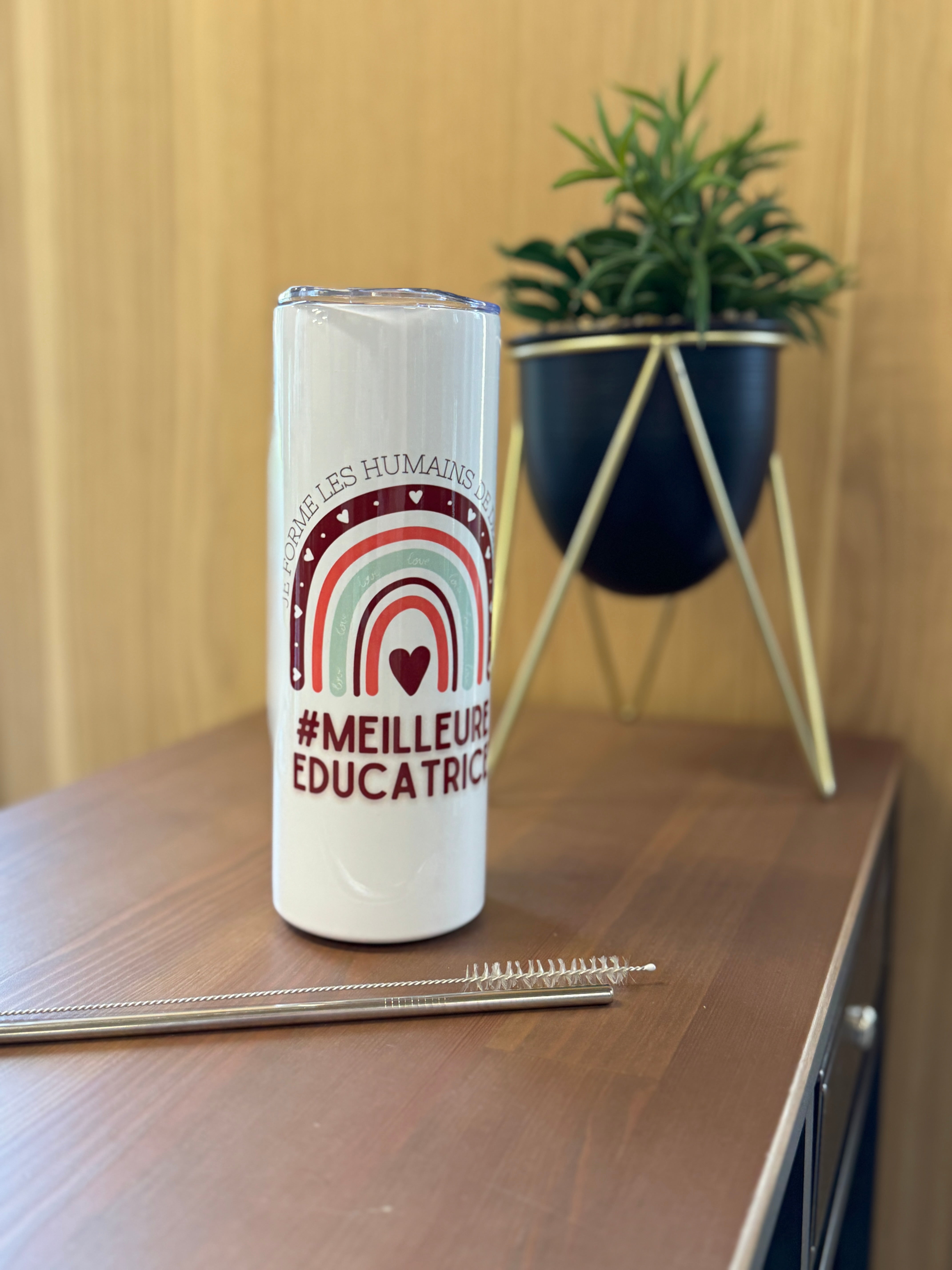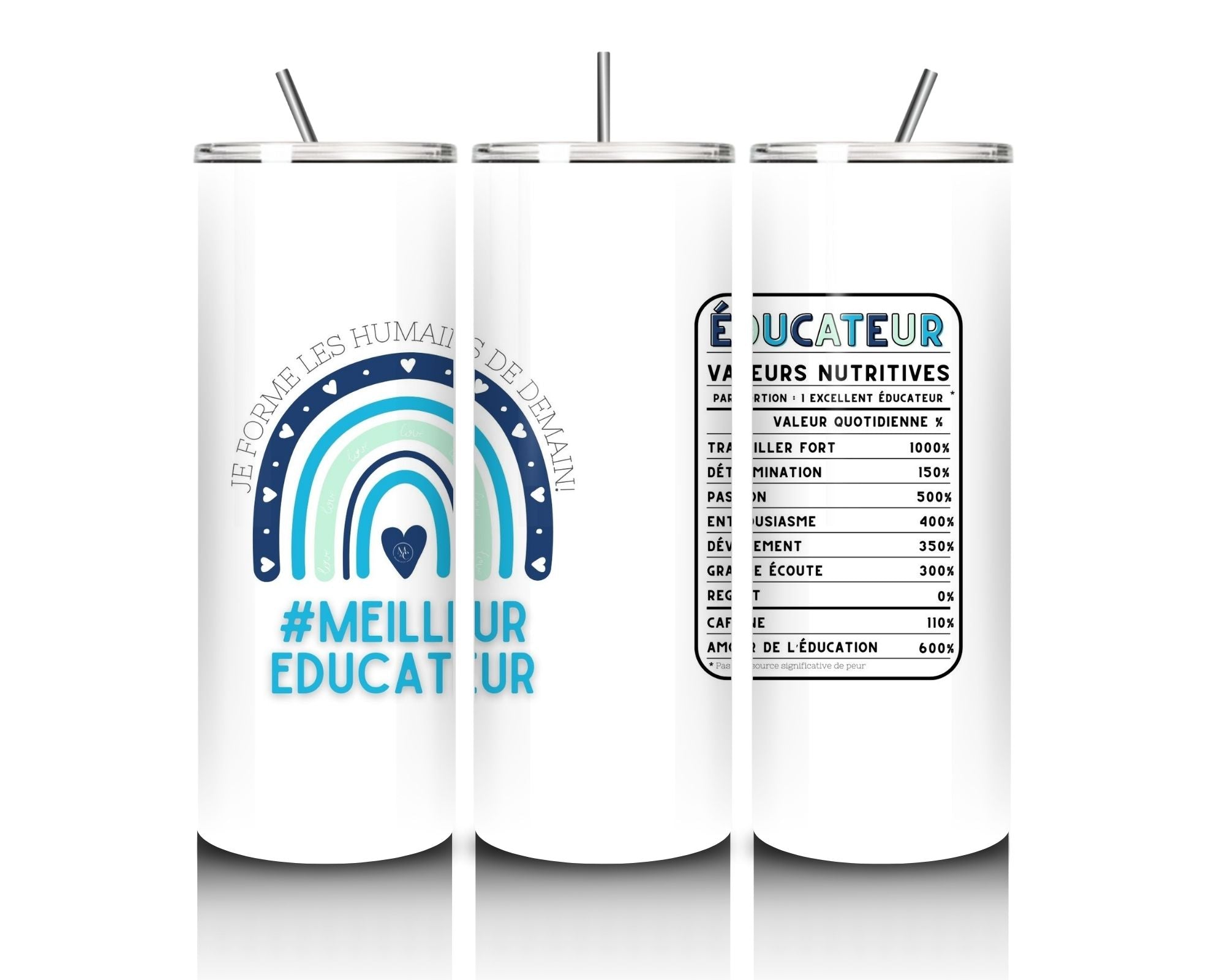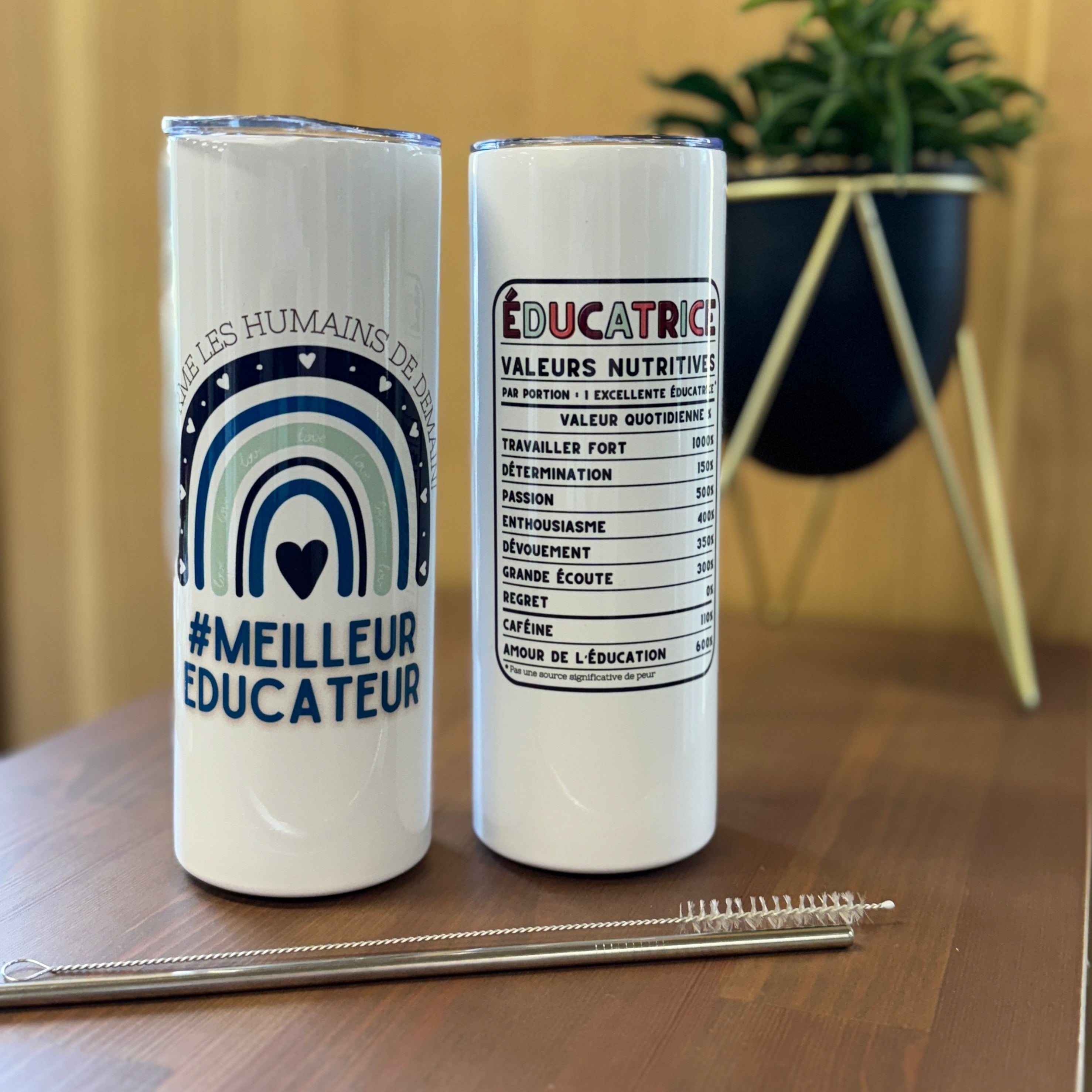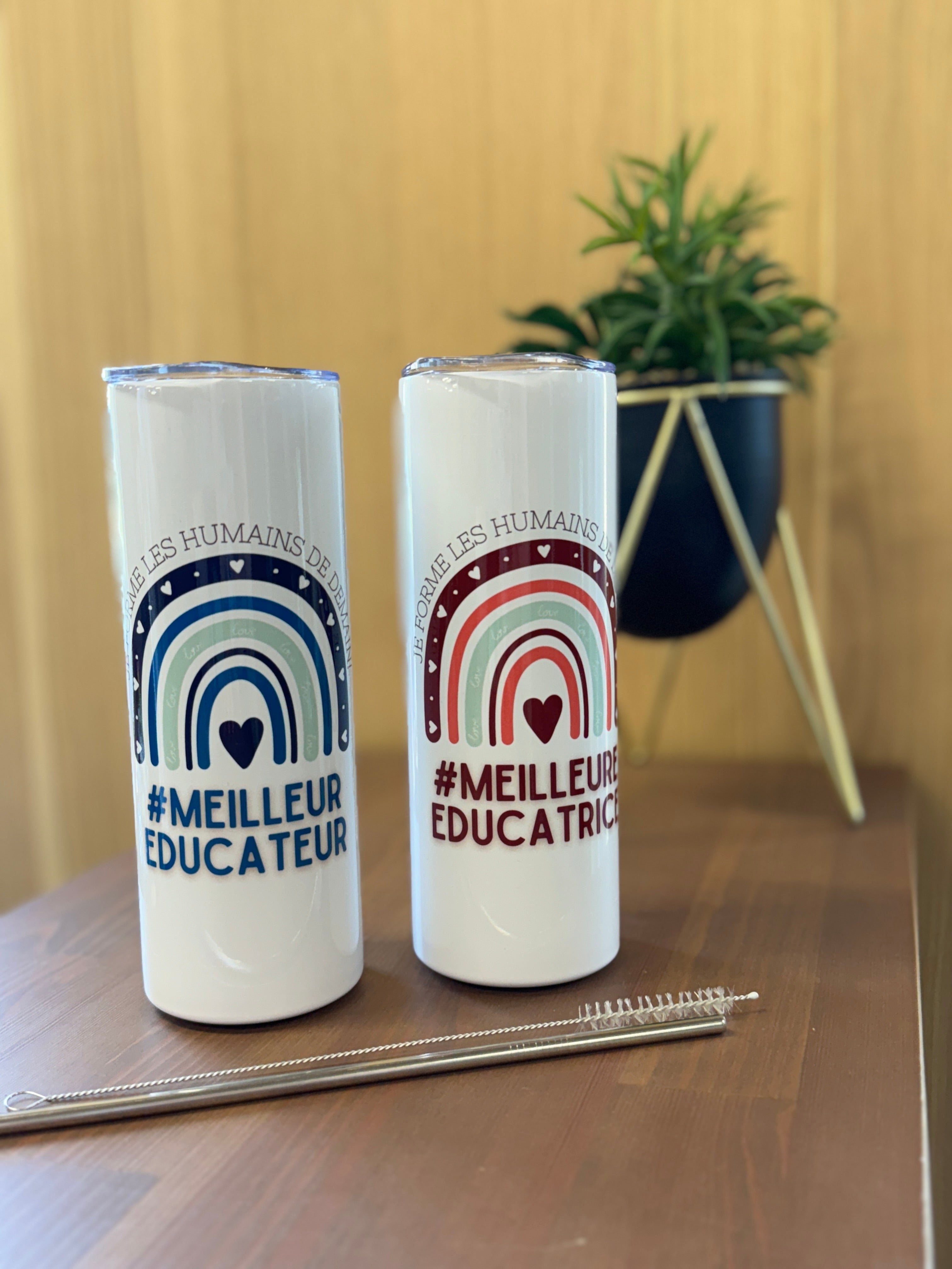 L'inscription "MEILLEUR ÉDUCATEUR/MEILLEURE ÉDUCATRICE" est fièrement imprimée sur chaque gobelet, témoignant de l'admiration et de l'appréciation pour leur dévouement remarquable et leur impact durable dans le domaine de l'éducation.