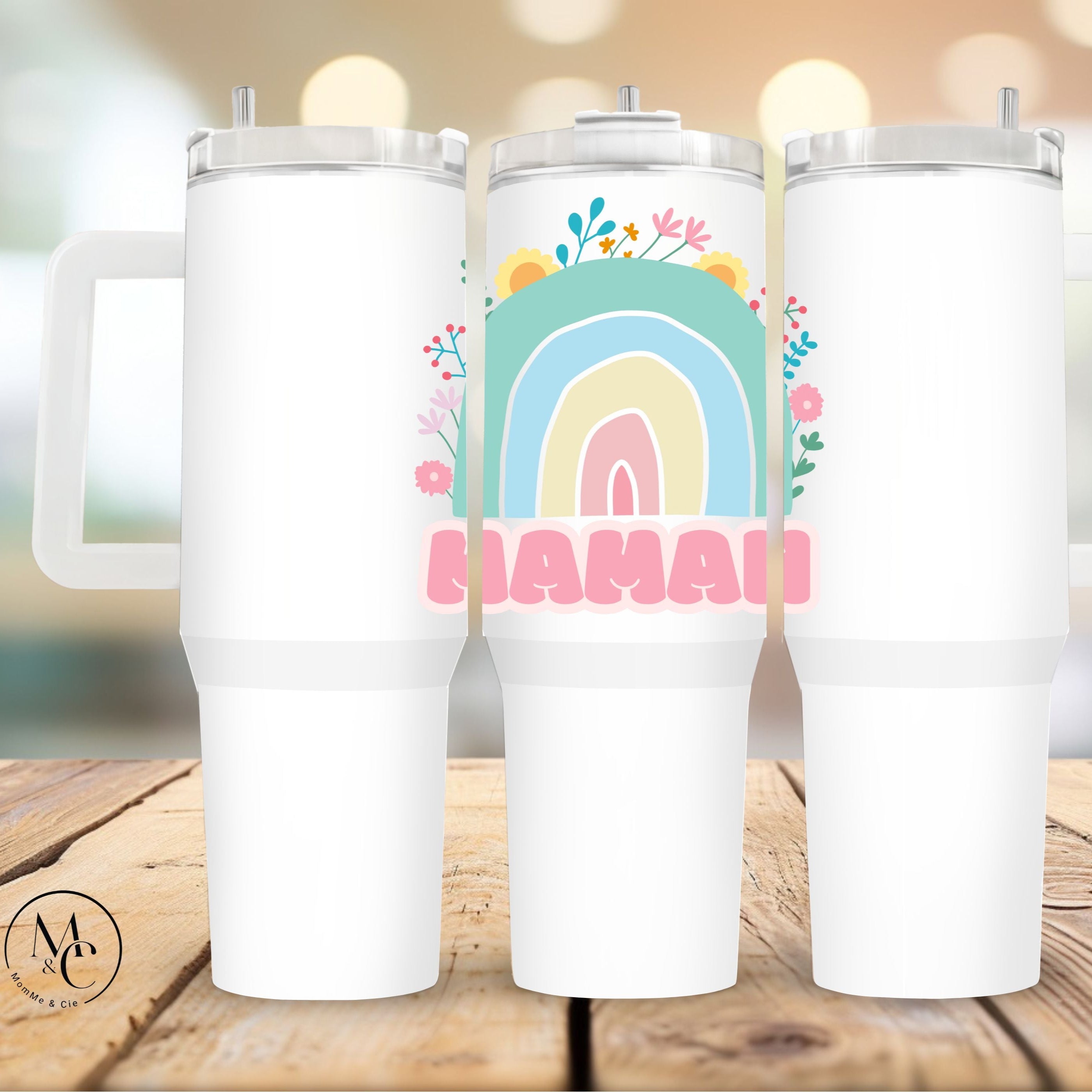 Gobelet isolant 40 oz - Imprimé Maman & arc-en-ciel