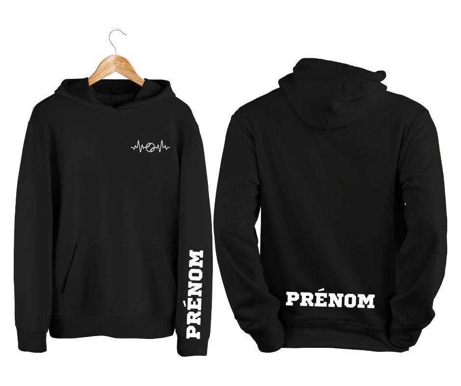 Hoodie avec poche kangourou enfant et junior en bambou noir Battement de coeur baseball petit