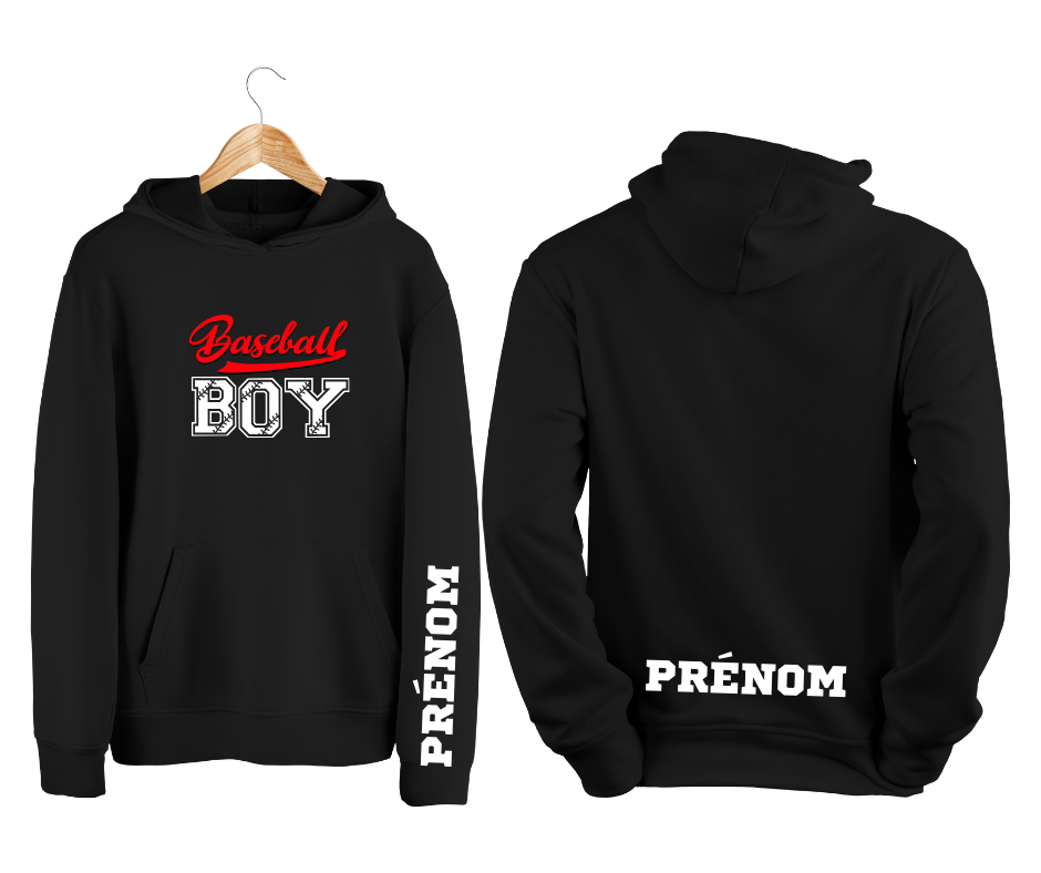 Hoodie avec poche kangourou enfant et junior en bambou noir Baseball boy