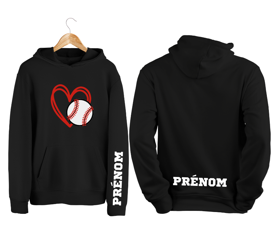 Hoodie avec poche kangourou enfant et junior en bambou noir Love baseball gros