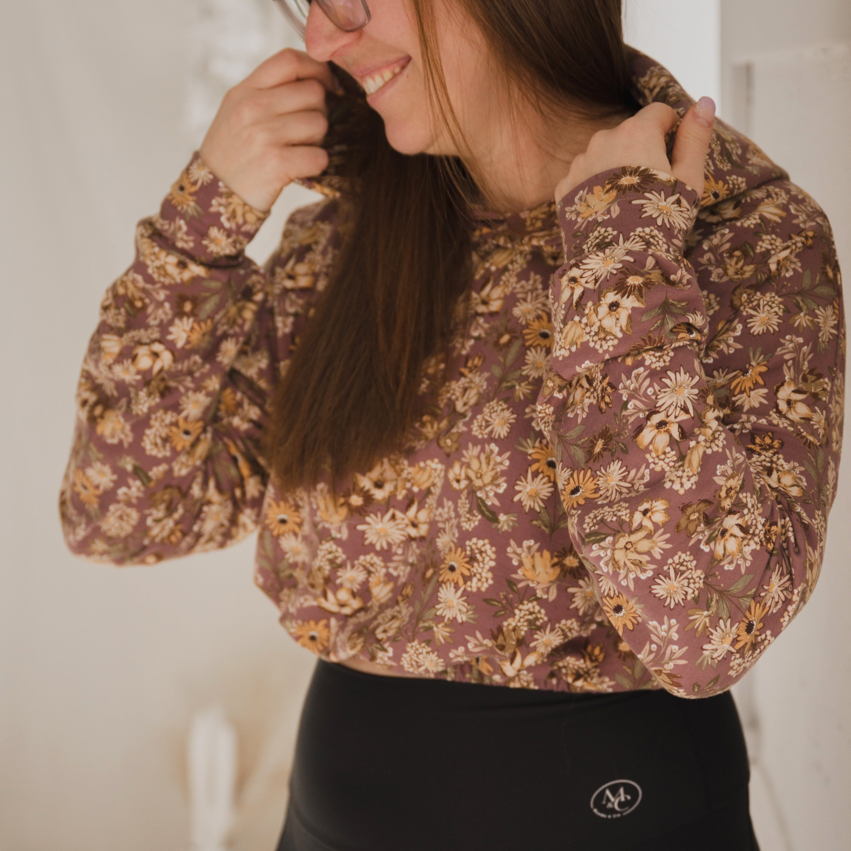 Hoodie crop manche longue en bambou fleur des champs avec élastique à la taille pour femme