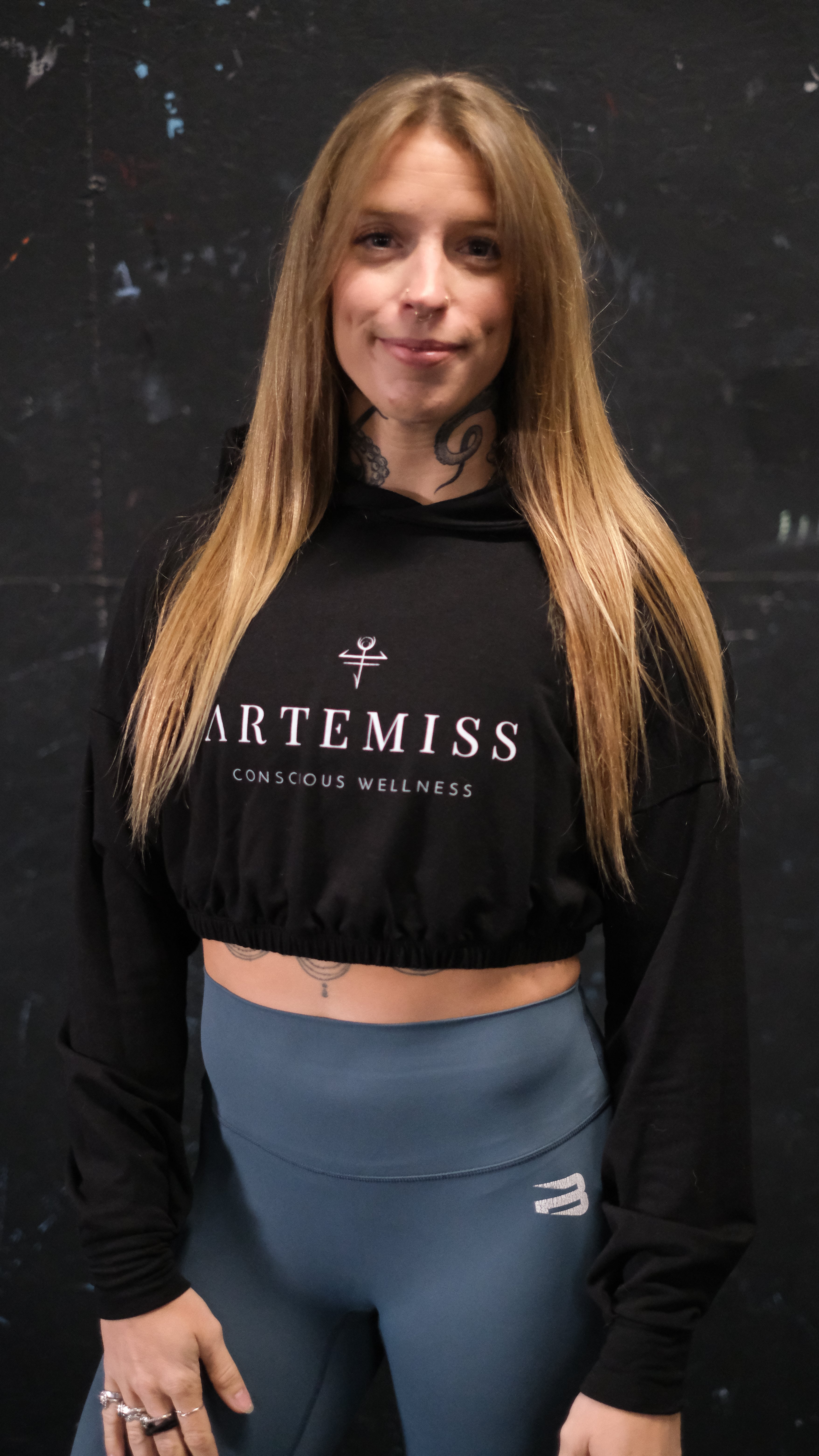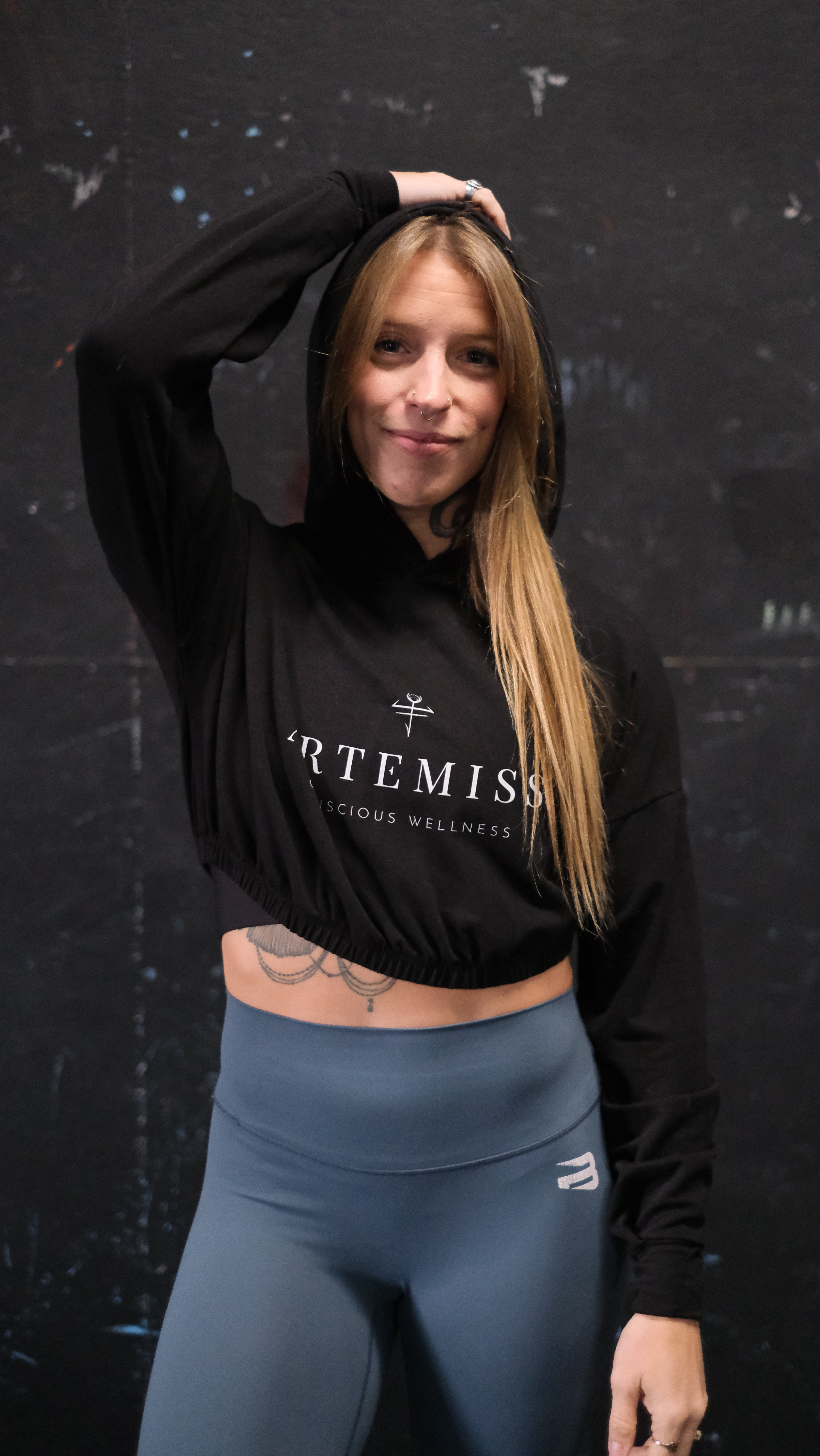 Hoodie crop manche longue en bambou noir avec élastique à la taille pour femme Artemiss