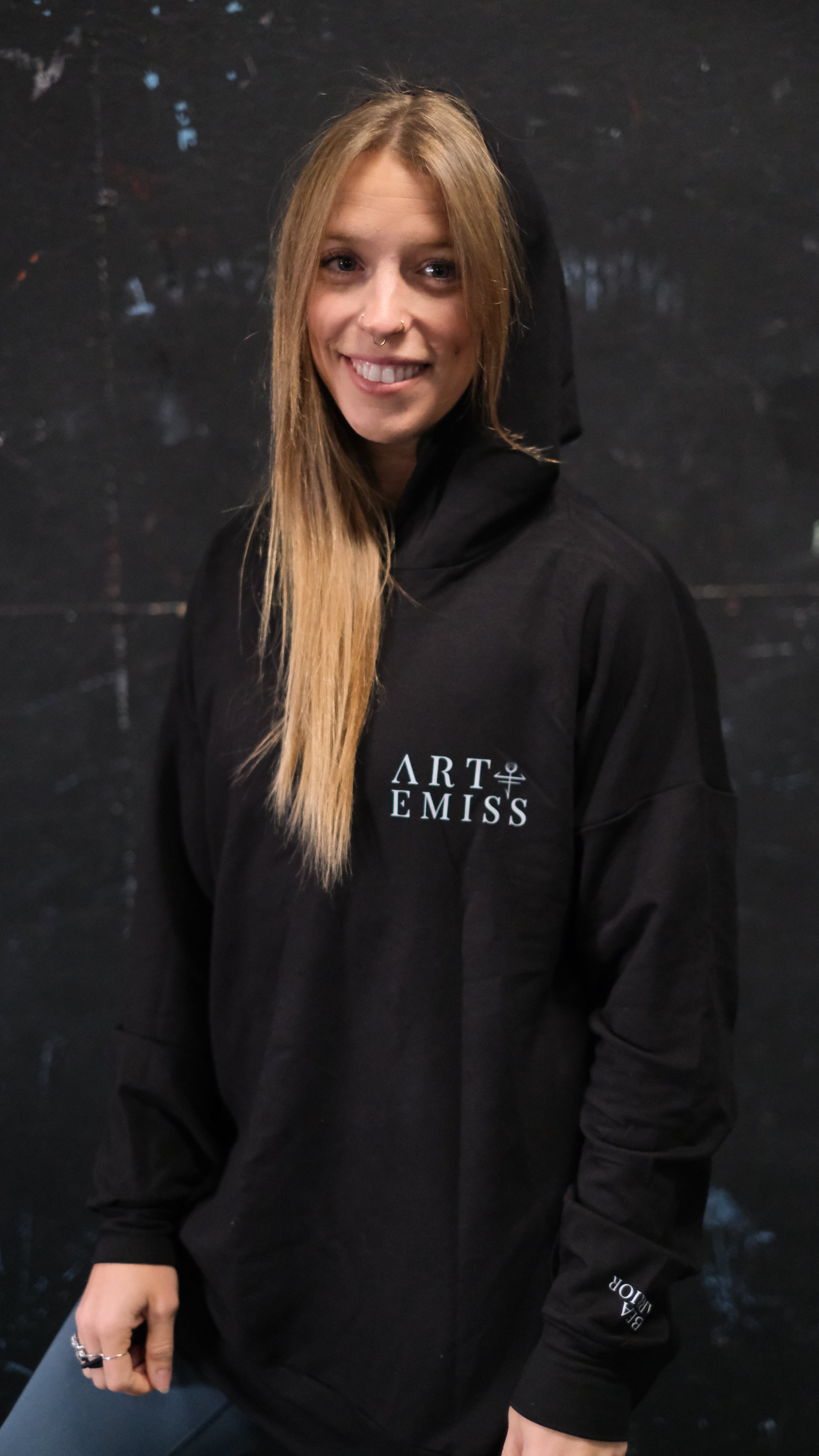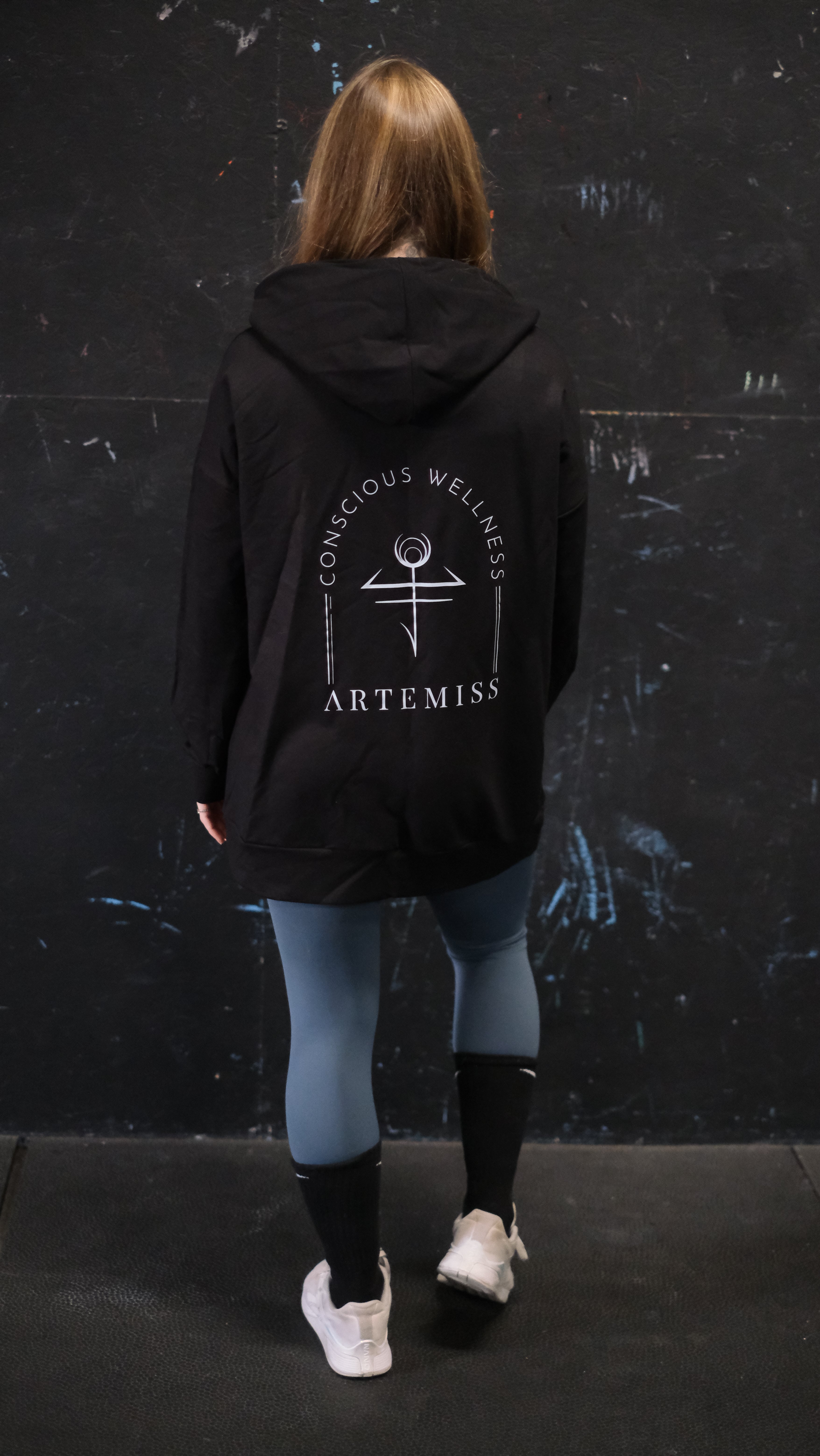 Hoodie oversize manche longue en bambou noir avec bande à la taille pour femme Artemiss