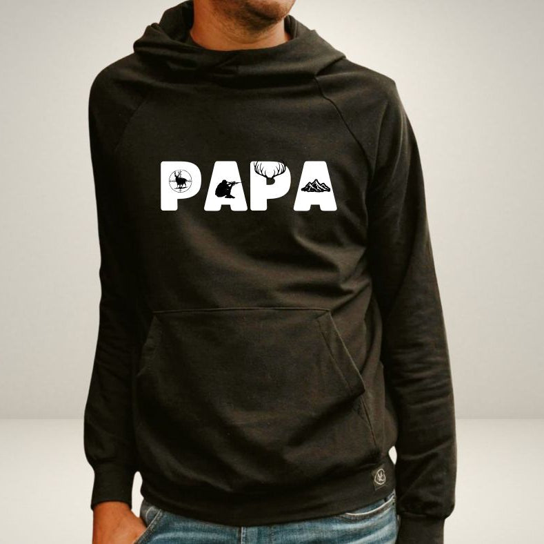 Hoodie unisexe noir en bambou Papa chasseur