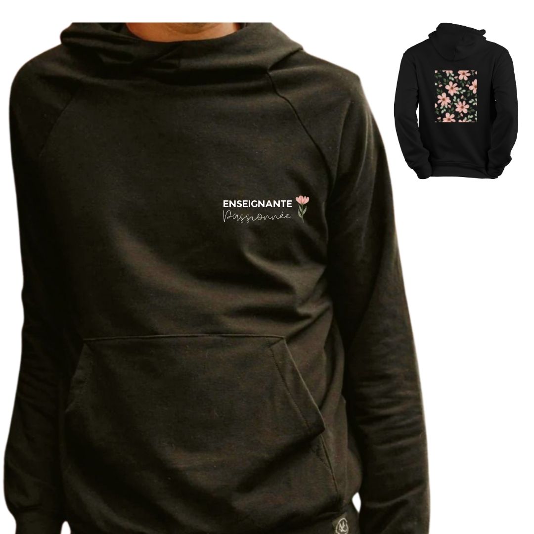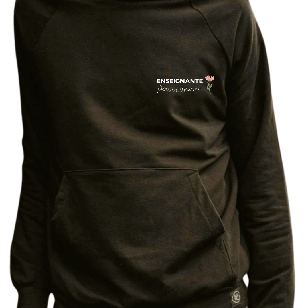 Hoodie unisexe noir en bambou - ENSEIGNANTE PASSIONNÉE