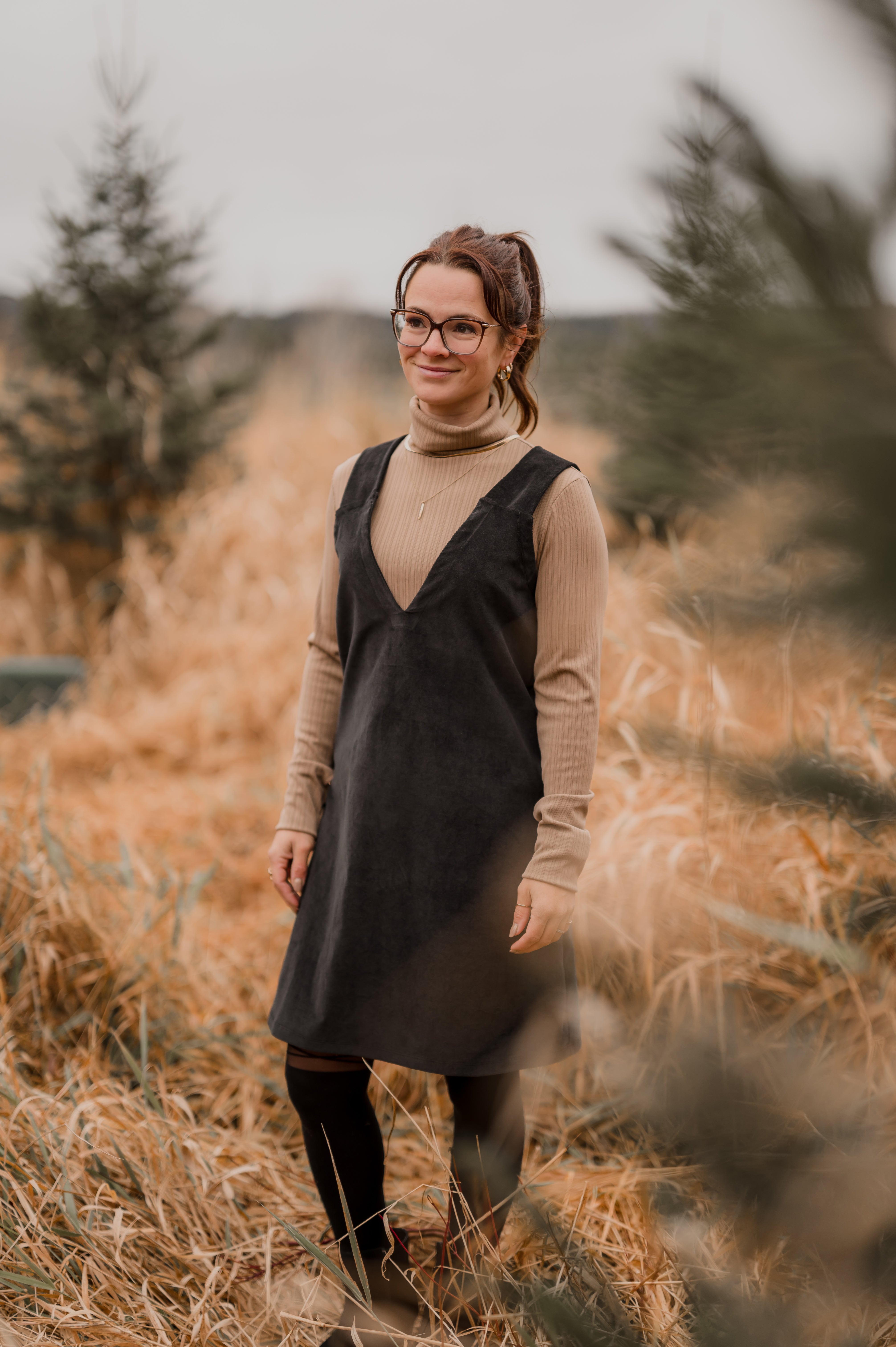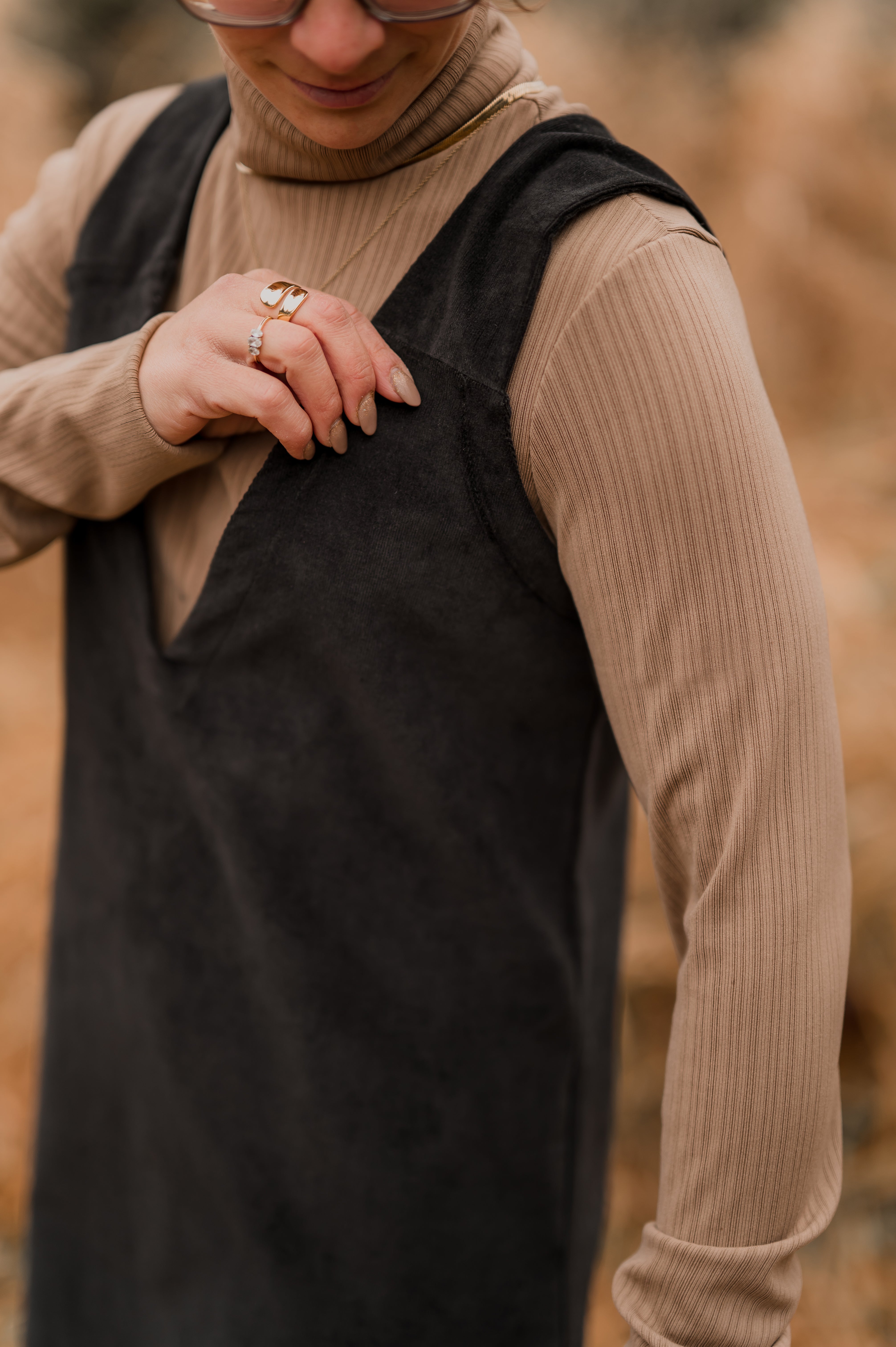 Avec sa coupe droite légèrement ample et son encolure en “V” flatteuse, il s’agence parfaitement avec un col roulé, une chemise ou un chandail ajusté.