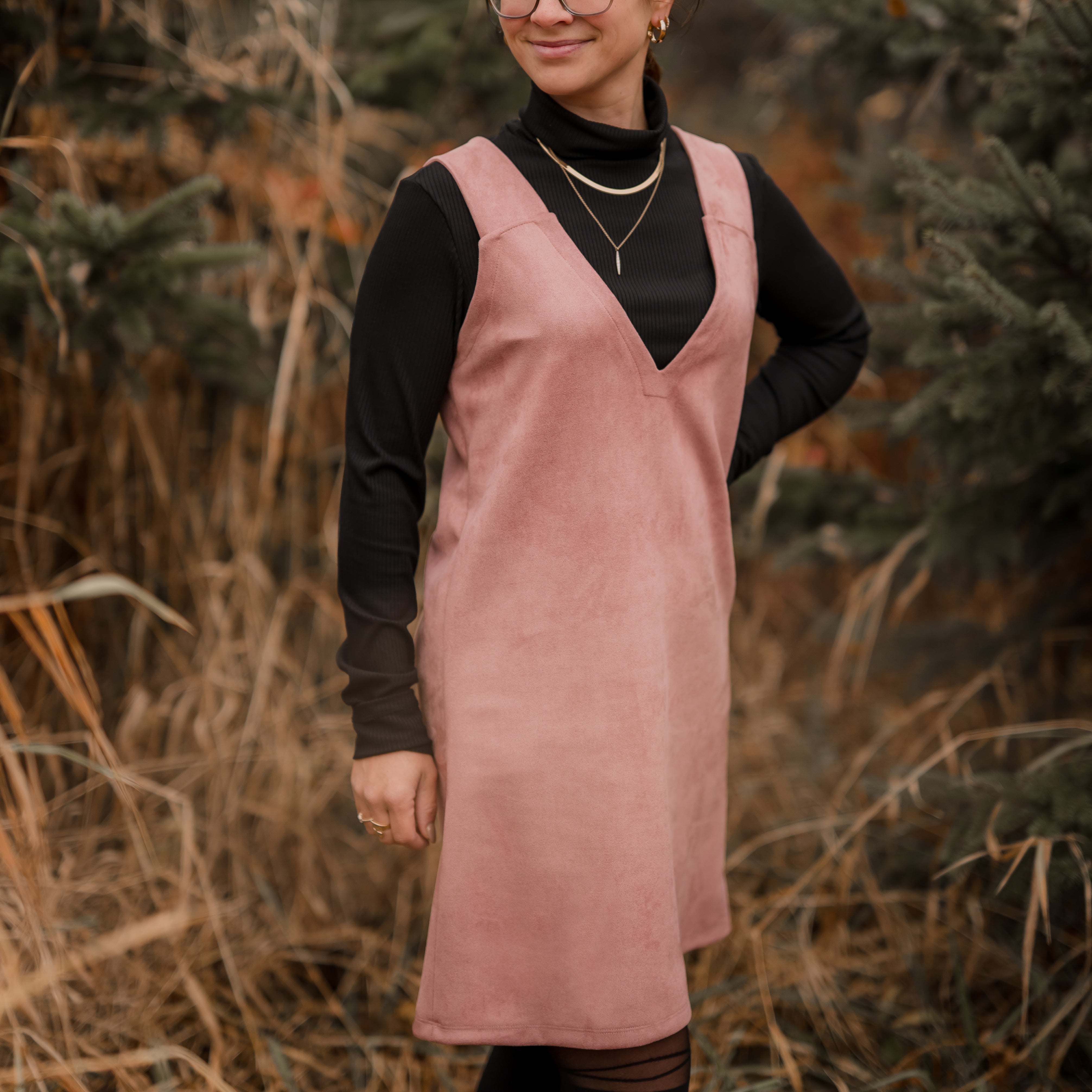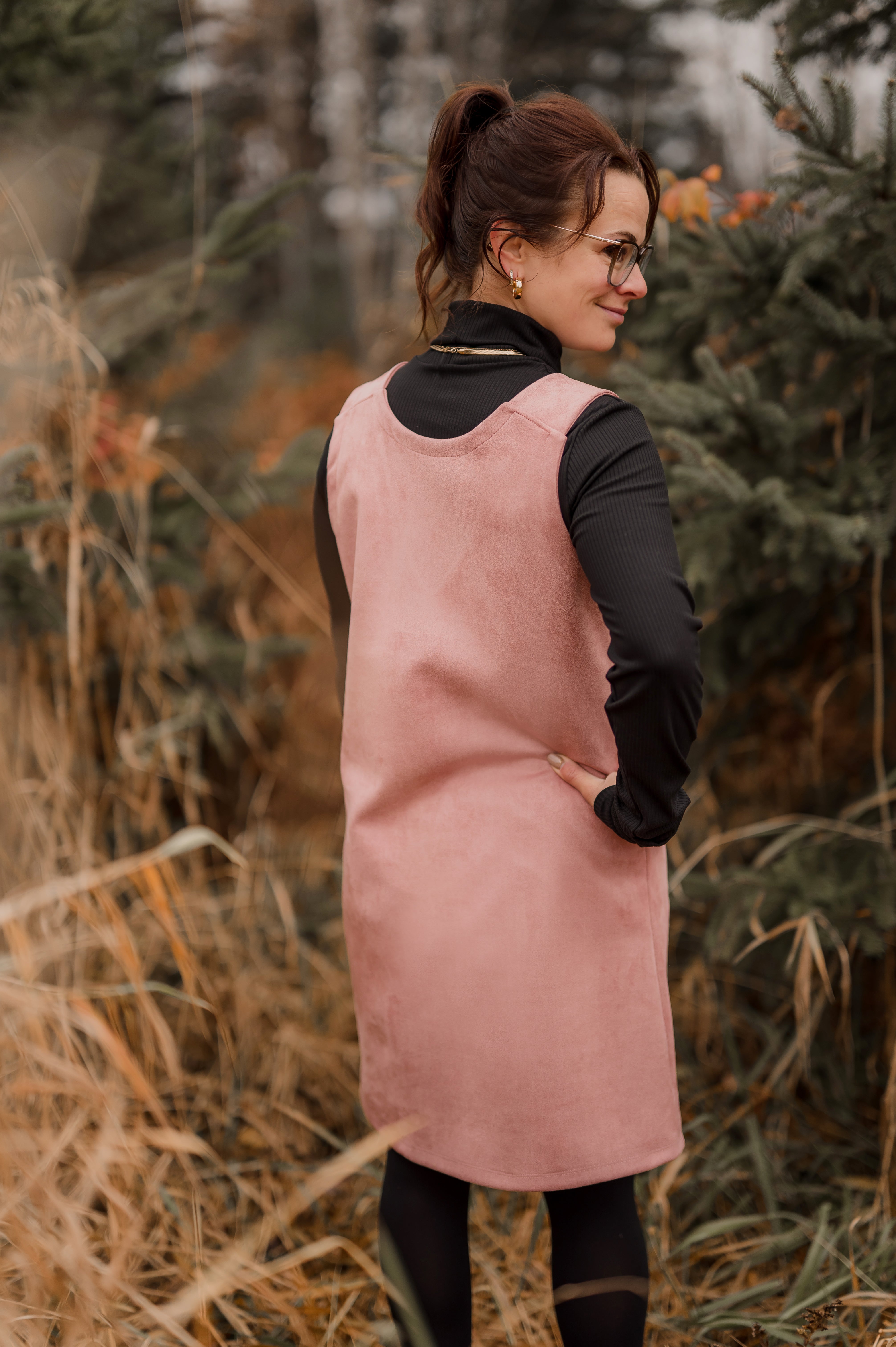 Jumper Livia de couleur vieux rose en simili suède pour femme