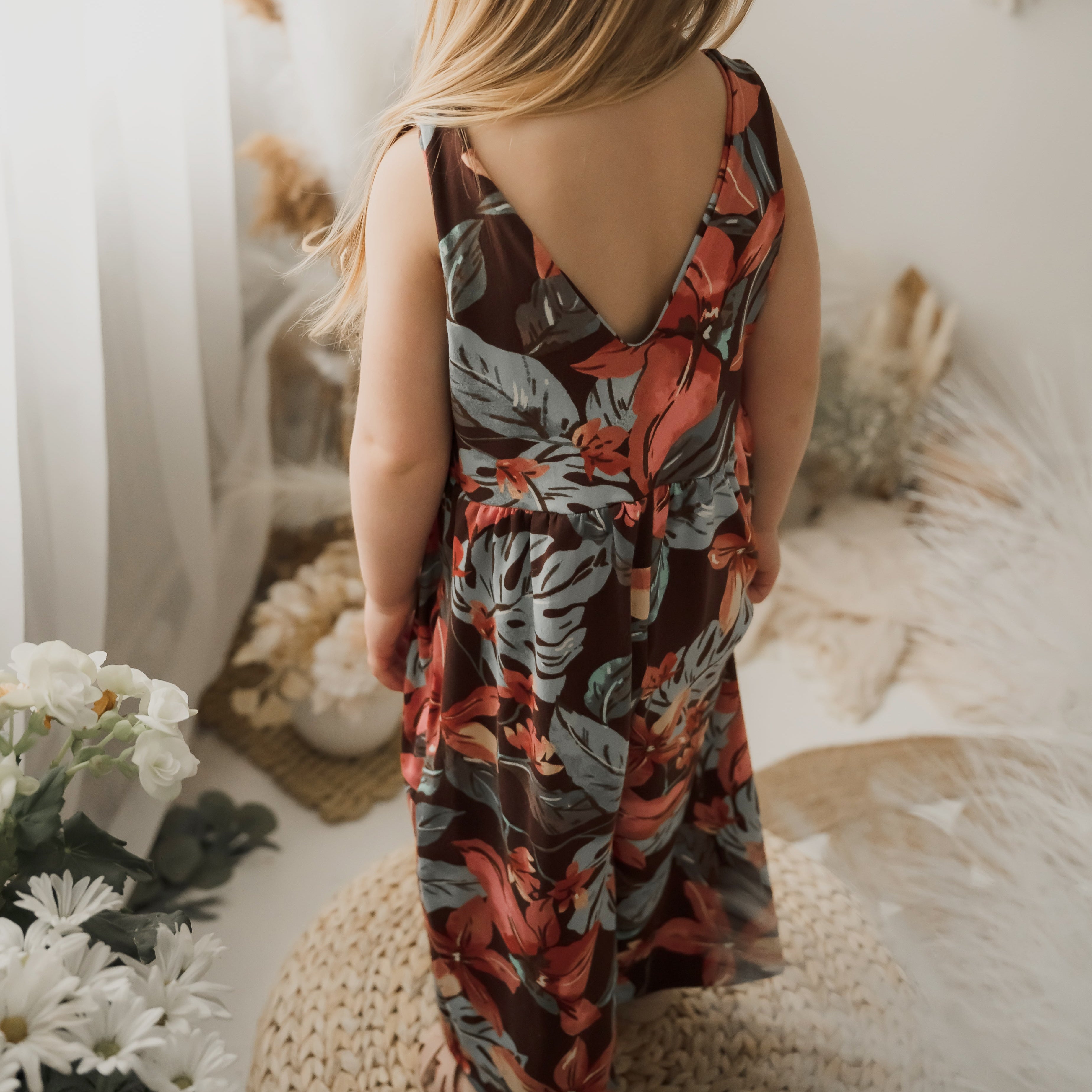 Jumpsuit Mary à jambe évasée fleuri brun en polybrush pour enfant