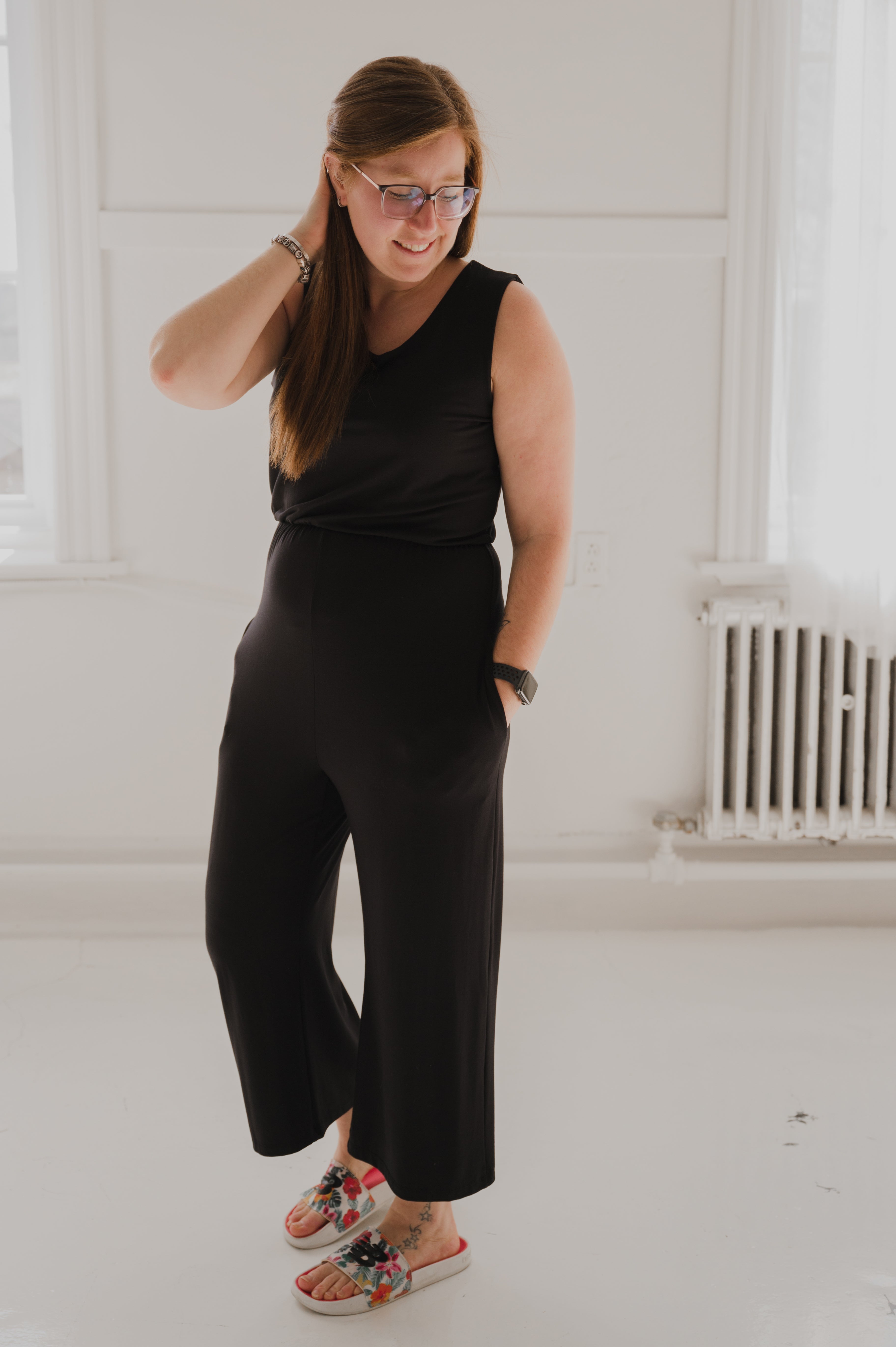 Le tissu en bambou doux et respirant offre un confort optimal tout au long de la journée. Le jumpsuit dispose également de poches latérales pratiques et d'un élastique à la taille pour plus de confort et de flexibilité.