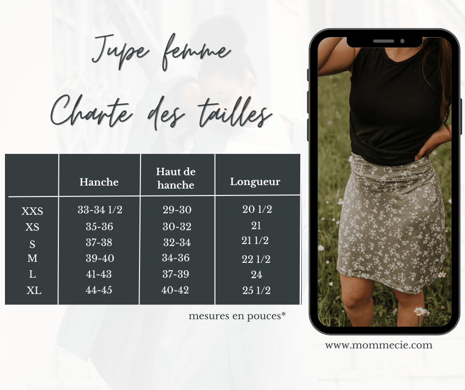 La jupe présente une coupe flatteuse, avec une taille ajustée et une silhouette évasée. Cette coupe met en valeur les courbes féminines tout en offrant un confort optimal. La longueur de la jupe peut varier, allant de légèrement au-dessus du genou à mi-mollet, selon vos préférences.
