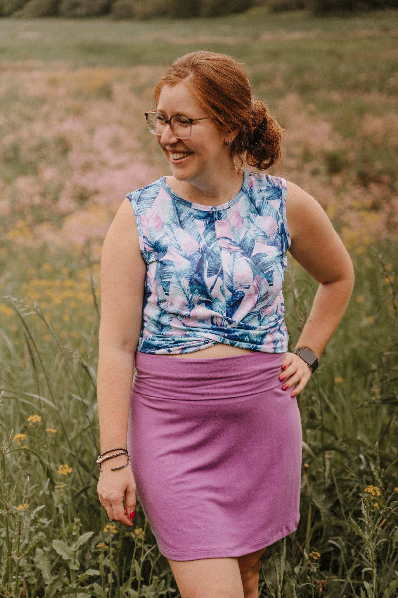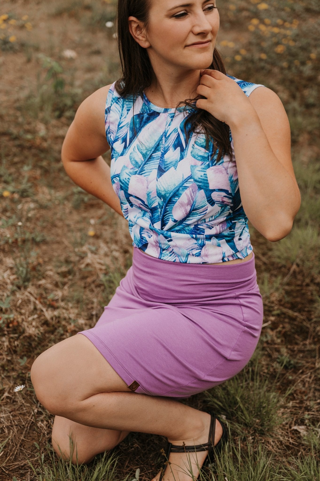 La jupe lilas peut être associée à une variété de hauts, tels que des chemisiers, des débardeurs ou des t-shirts basiques, pour créer des tenues élégantes et polyvalentes. Elle se marie également bien avec des chaussures à talons hauts pour une occasion plus formelle ou avec des sandales pour une tenue décontractée et estivale.