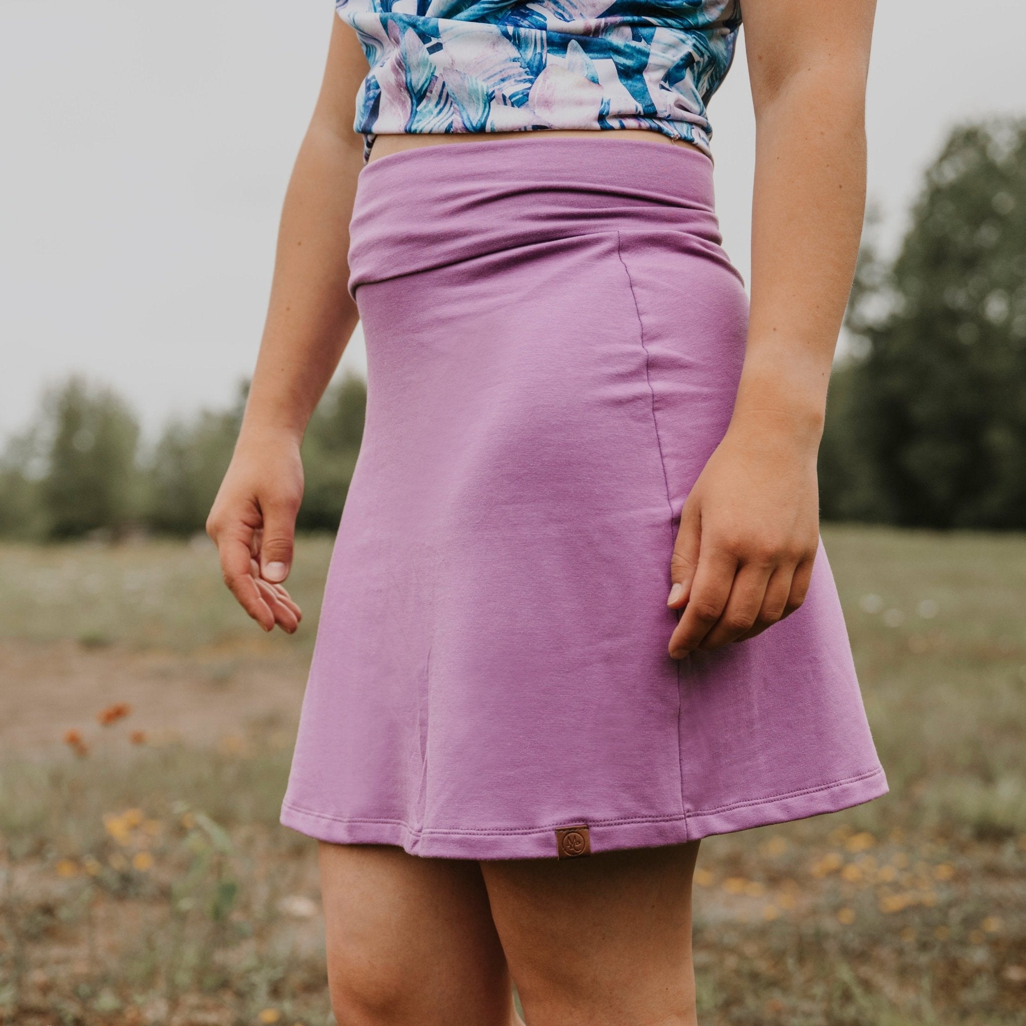 Jupe moyenne de couleur lilas en bambou pour femme avec bande ajustable à la taille. (fin saison)
