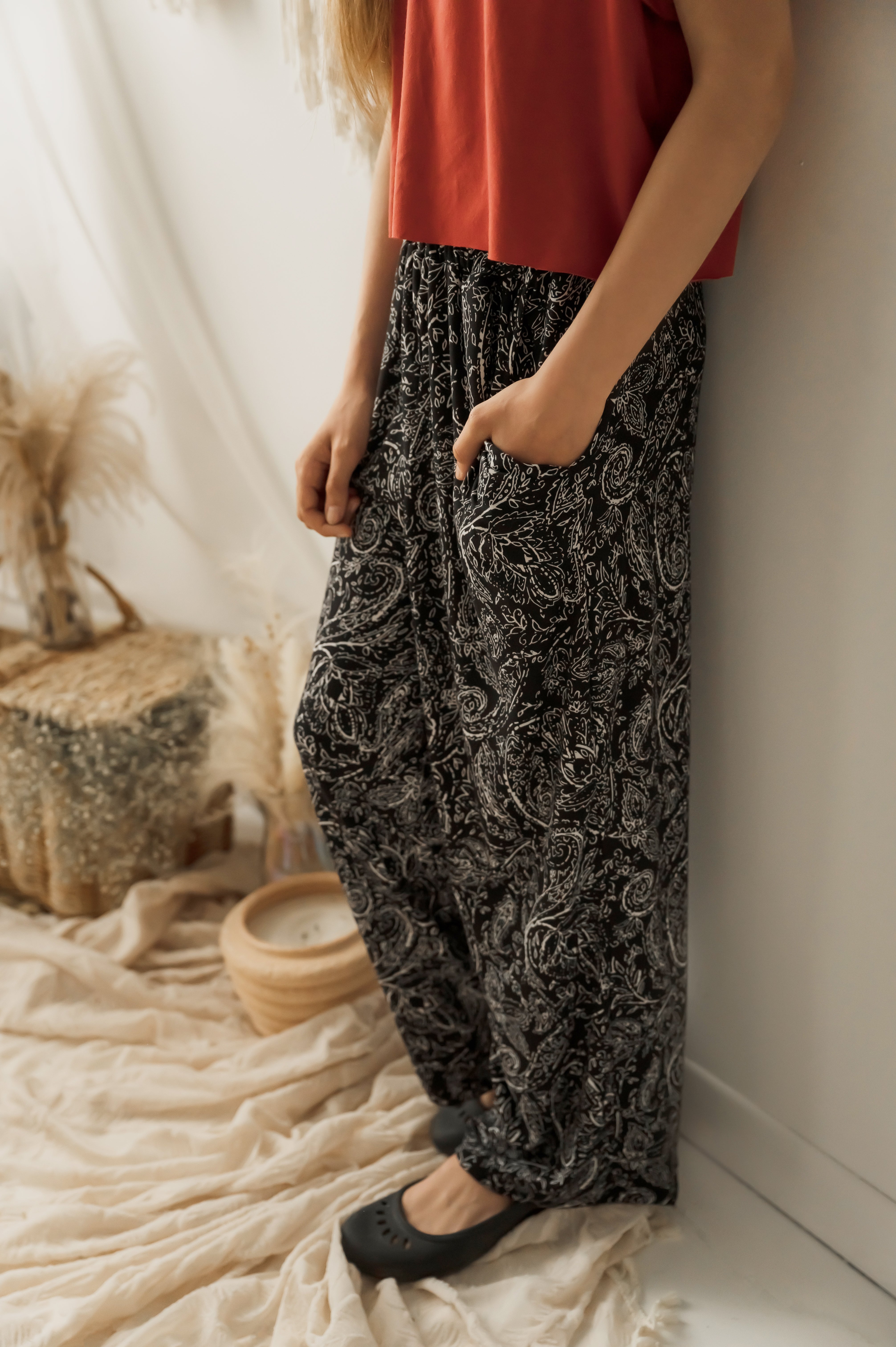 Palazzo Eva à motif paisley noir et blanc pour enfant
