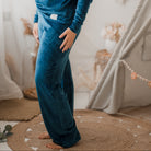Pantalon détente à jambe large pour femme bleu pétrole, idéal pour la maternité