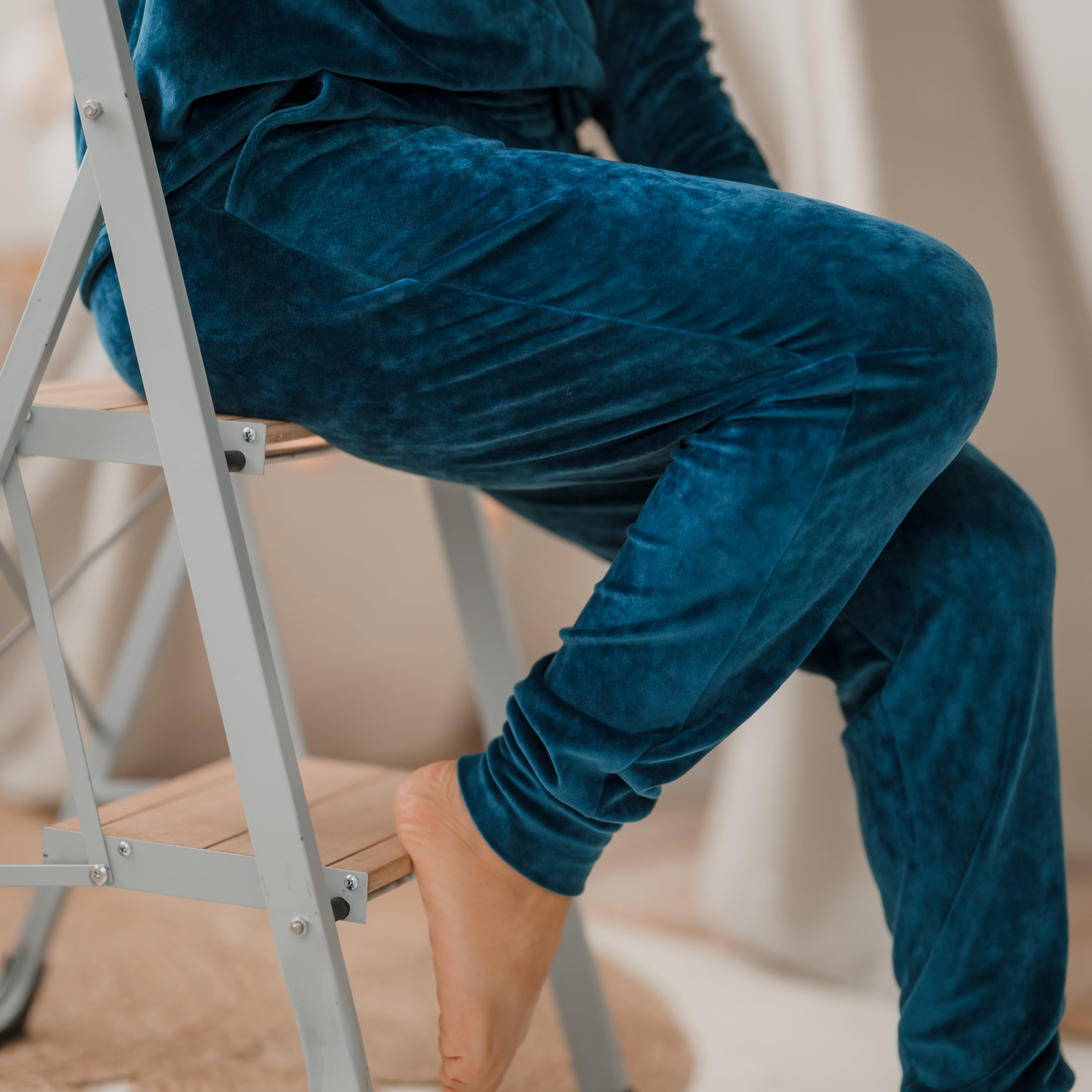 Pantalon détente style jogger pour femme bleu pétrole, idéal pour la maternité