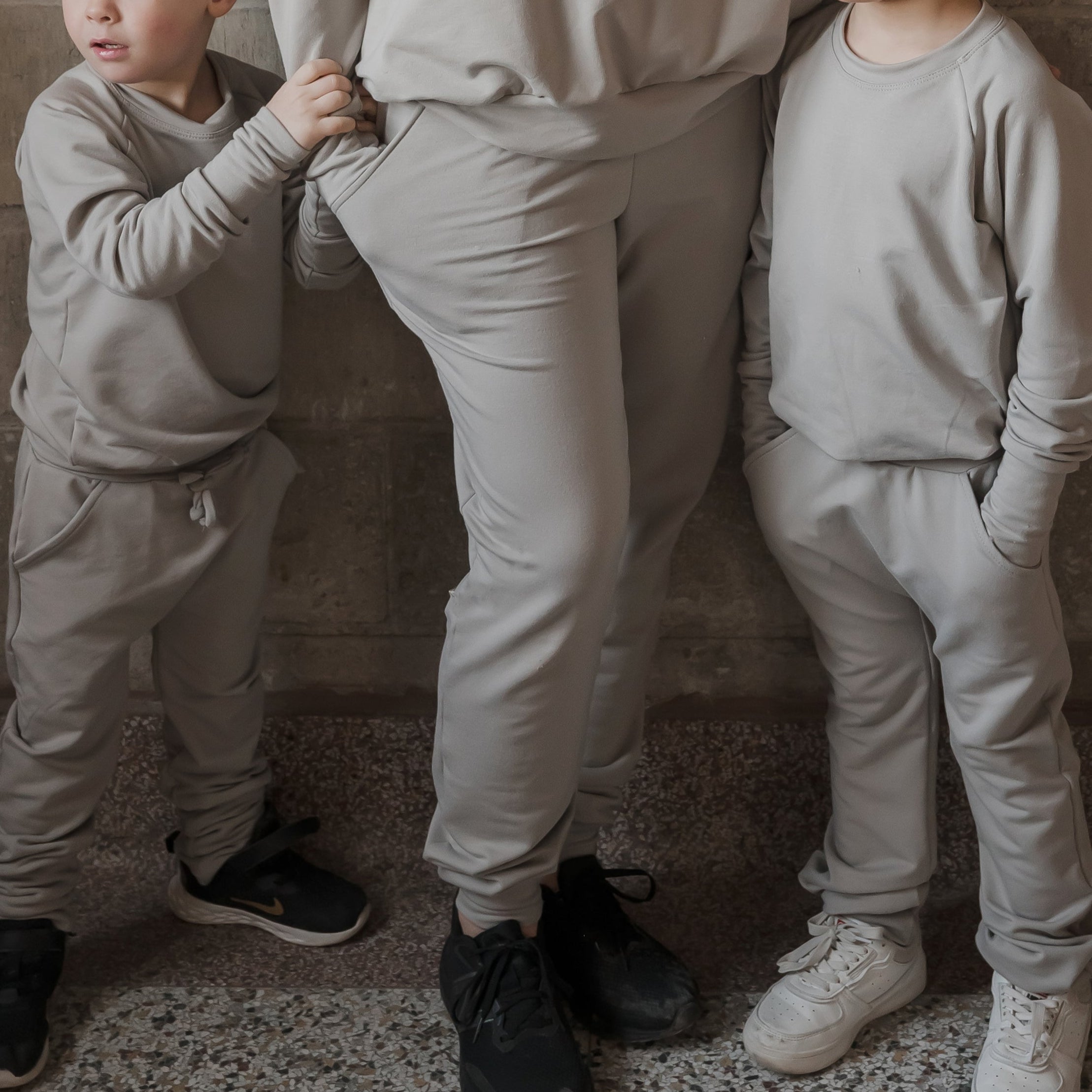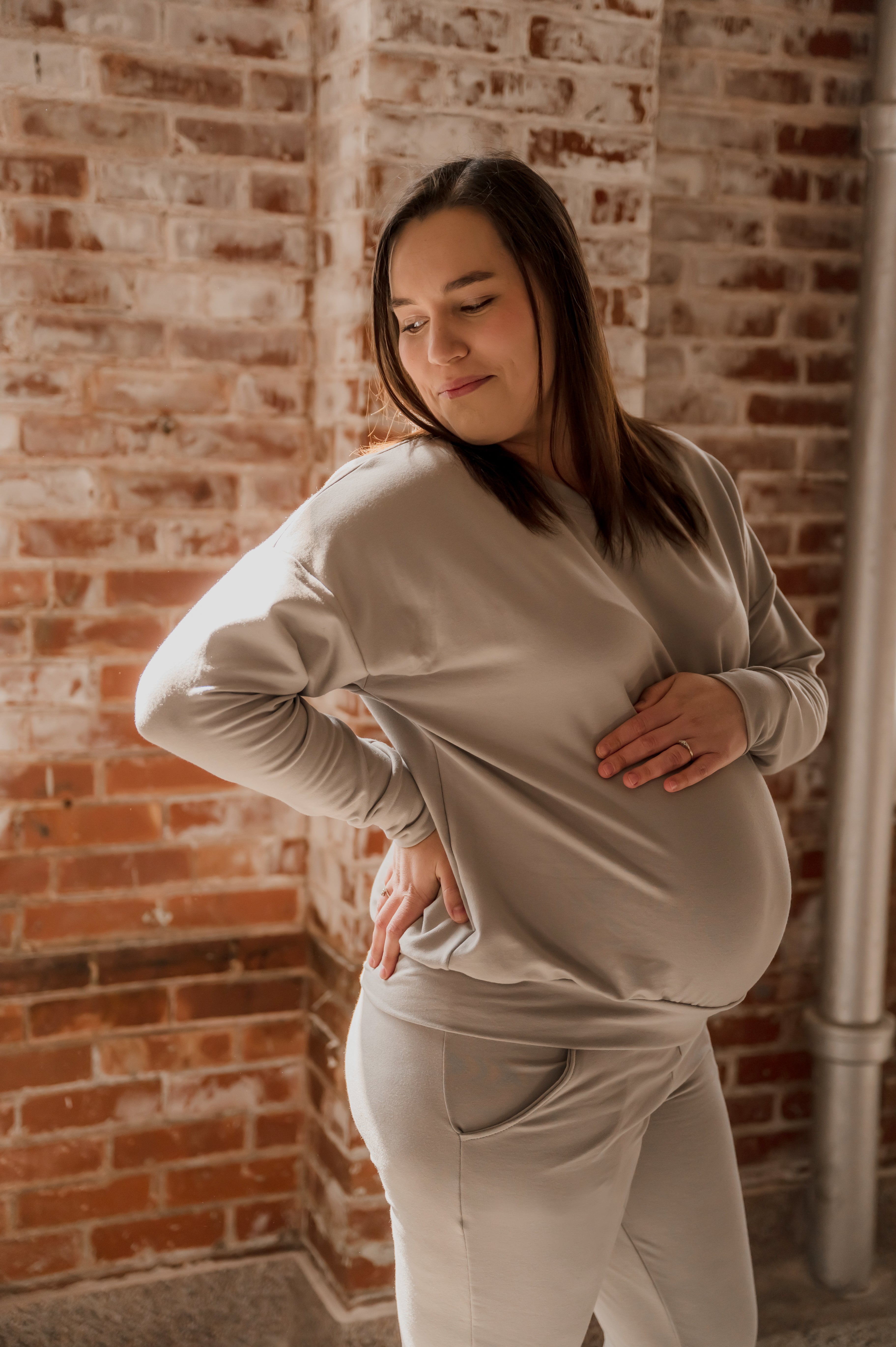 Pantalon style jogger pour femme en bambou gris béton, idéal pour la maternité
