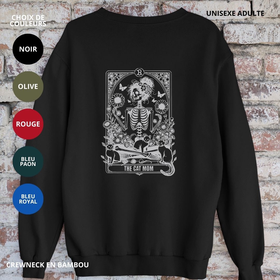 Crewneck en bambou fleece - couleurs variées - Impression The Cat Mom
