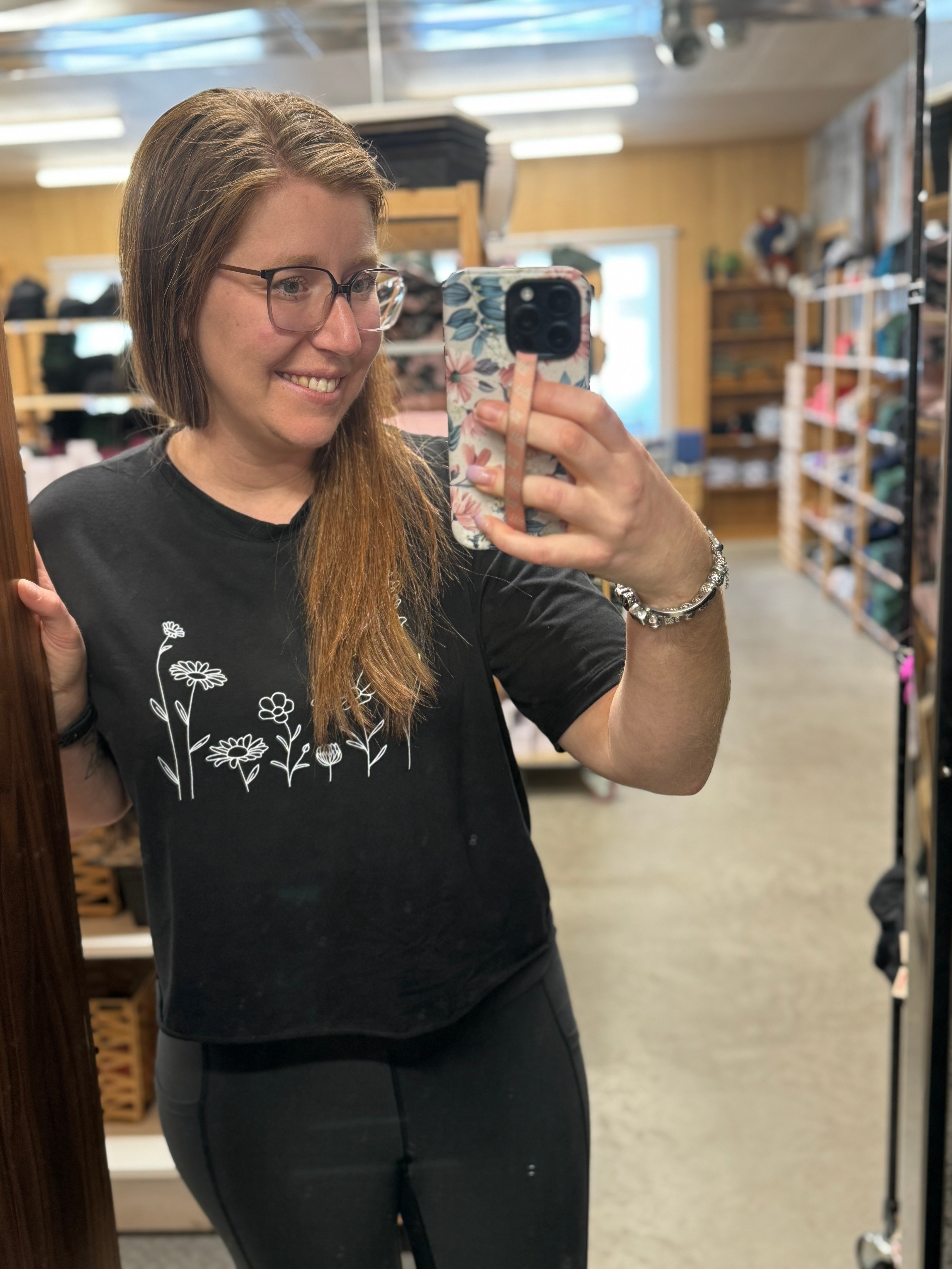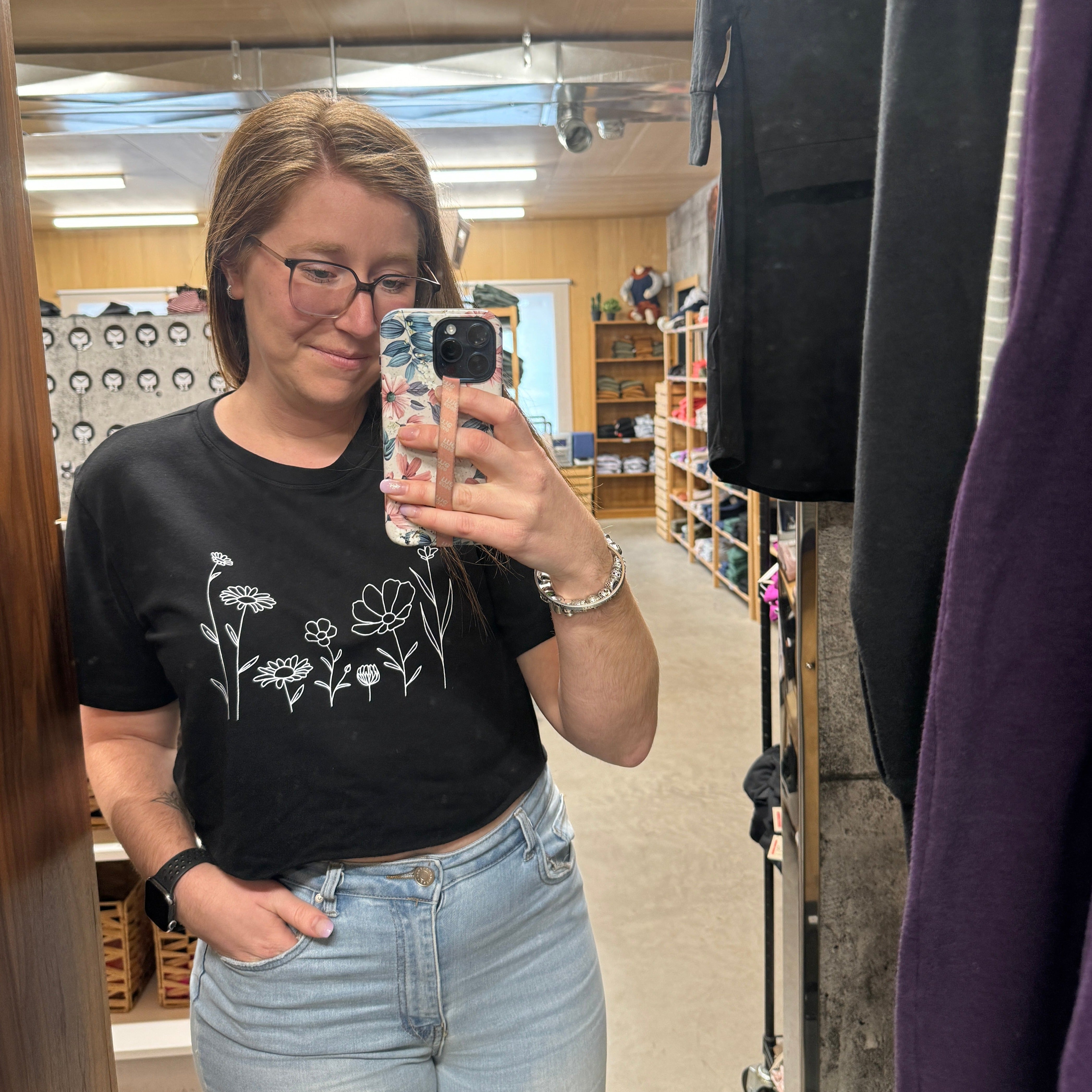 T-shirt Marie crop en bambou noir pour femme - Imprimé Fleurs