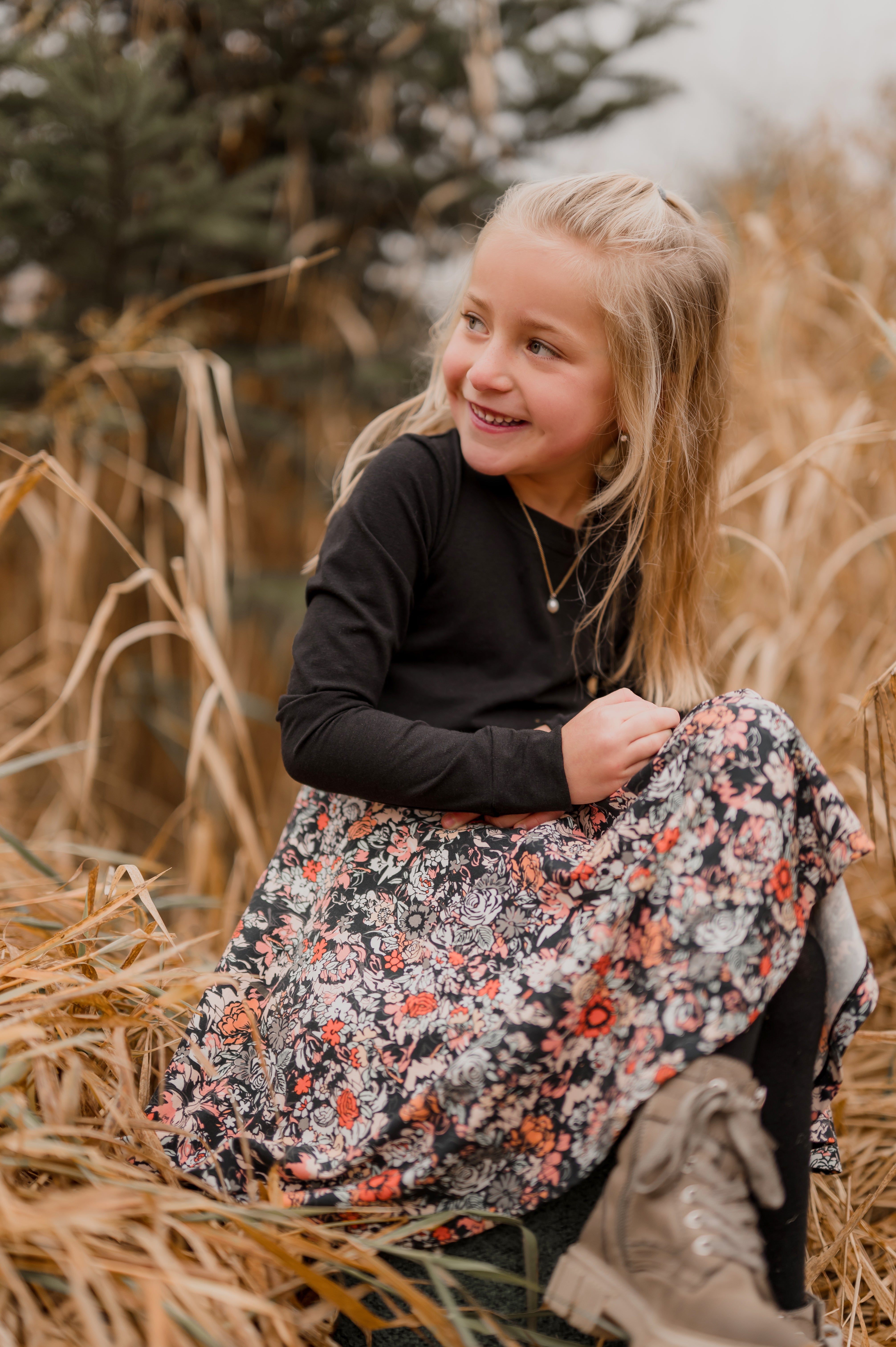 Sa jupe évasée et ses manches longues la rendent parfaite pour les journées fraîches, que ce soit pour jouer à la maison, aller à l’école ou participer à une fête.