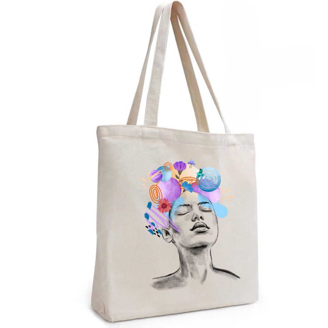 Sac fourre-tout en toile avec fermeture éclair - Visage coloré | ANATHA