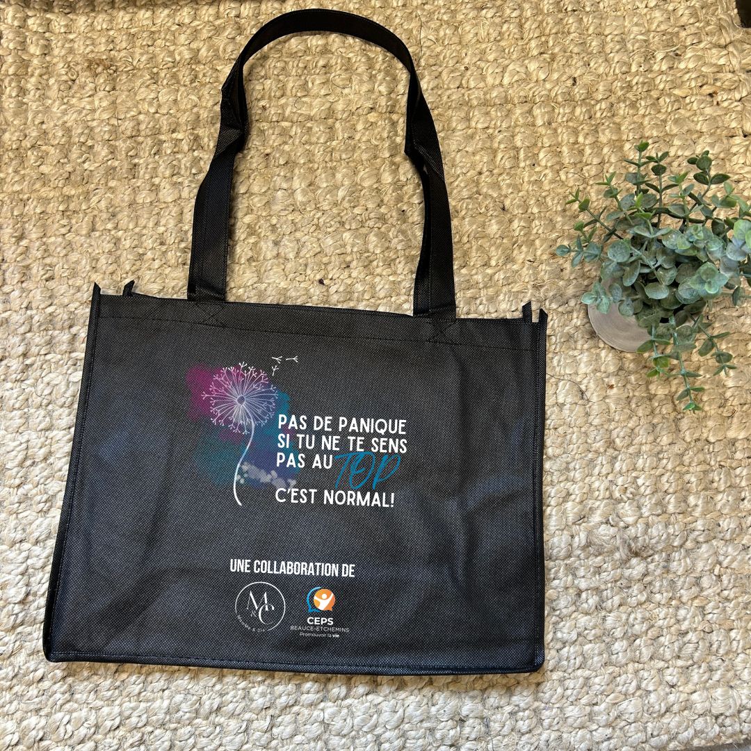 Transportez vos essentiels avec style grâce à notre sac réutilisable noir imprimé. Conçu pour être à la fois pratique et durable, ce sac au format généreux de 15,5x12 pouces est parfait pour vos sorties quotidiennes ou, dans ce cas-ci, votre récolte de bonbons. Ses grandes poignées offrent un confort optimal et permettent de le porter facilement à l'épaule ou à la main. Il est conçu pour durer et réduire votre consommation de sacs à usage unique. Un incontournable pour une vie plus écoresponsable !
