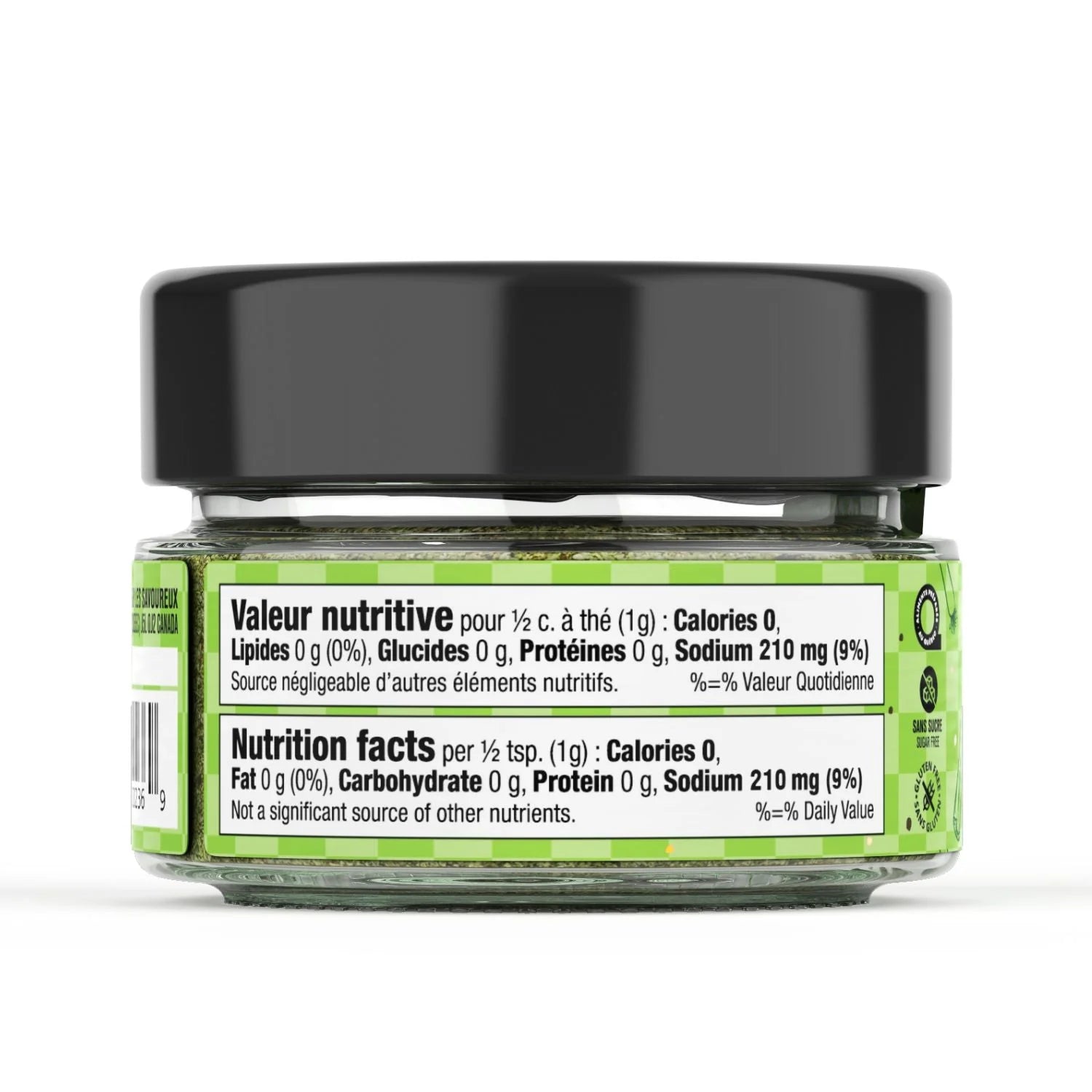 C’est un mélange finement moulu, 100 % naturel, qui combine la richesse du sel de mer à une combinaison savoureuse de légumes séchés et d’aromates: ail, oignon, céleri, poireau, poivron rouge et ciboulette.